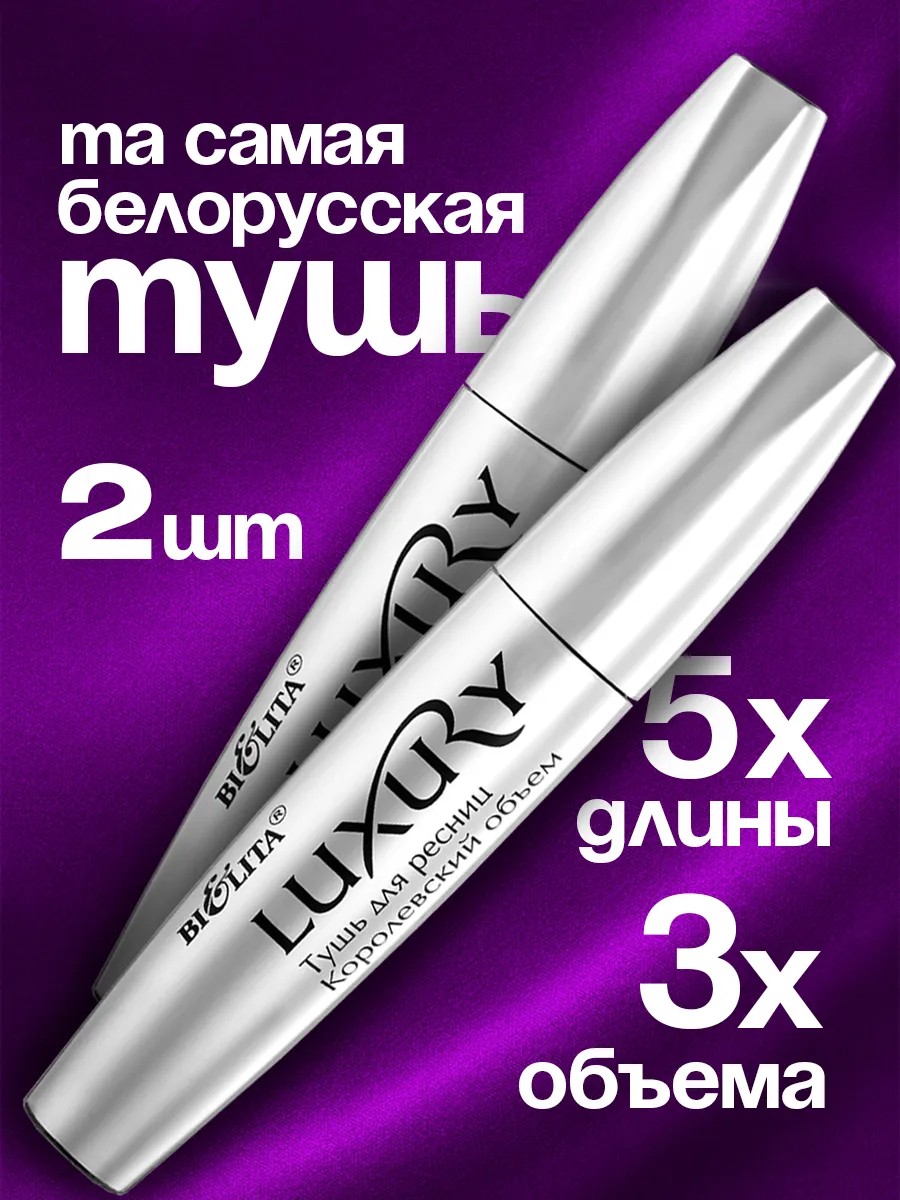 Тушь Luxury королевский объем от БЕЛИТА всего за несколько секунд сделает ваш взгляд глубоким и притягательным! С помощью удобной силиконовой кисточки вы без труда нанесете продукт – щеточка тщательно разделяет и делает каждую ресничку длиннее и объемнее.
