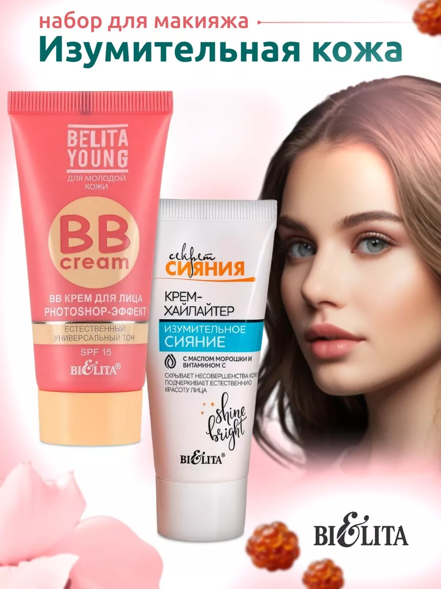 Набор косметики "Изумительная кожа" состоит из хитов белорусского завода Белита - ВВ крем для лица Belita Young и Крем-хайлайтер Секрет Сияния. 1) BB-крем белорусский- настоящий ХИТ среди тонирующих средств! Универсальный, близкий к естественному bb- крем мгновенно подстроится под цвет вашего лица, подобно Фотошопу, визуально скроет даже явные недостатки, не создавая при этом эффект маски, увлажняет, обладает SPF 15 УФ-защитой. BB-крем для лица Photoshop эффект от bielita подходит для всех типов кожи. 2) Хайлайтер для лица с маслом морошки и витамином С - придаст естественное сияние вашей коже. Активные компоненты, входящие в состав крема-хайлайтера, мгновенно преображают вашу кожу, скрывают следы усталости, придавая ей изумительное сияние. Набор косметики станет милым подарком для любимой, мамы, подруги или сестры. Запросы: себе любимой просто так/основа под макияж/уход за лицом/хайлайтер для лица/хайлайтер для лица жидкий белита/крем для лица/день рождения день матери себе любимой просто так маме сюрприз 8 марта любимой подруге сестре бибишка основа под макияж корректирующий праймер хайлайтер для макияжа баз под макияж для лица сухой с эффектом сияния для лица для тела bb крем белорусский белита bielita аптечная профессиональная косметика для макияжа праймер для лица сияние от прыщей отличный подарок для женщин, девушек, подростков, жене классная замена спрея, пудры, можно наносить кистью день учителя день матери тела лица бибишка хайлайтер шиммер контуринга загара косметика праймер жидкий скульптор кремовый румяна блестки крем маски стик бронзатор макияж шимер мерцающее биби белита энзимная пудра белита сияние молочко бронзер кожи шариках корректор скульптурирования кисть автозагар минеральный солнца декоративная эффектом блеск карандаш глиттер хайлатер мерцанием рассыпчатый выравнивания декоративная косметика белита хайлайтер bielita /bb крем для лица bb крем белита подарок для женщин, девушек, подростков, жене классная замена спрея, пудры, можно наносить