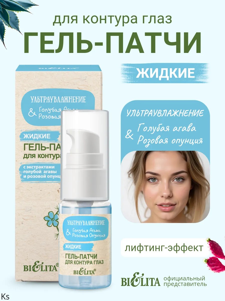 Жидкие гель-патчи для контура глаз Ультраувлажнение Голубая агава & розовая опунция от белорусского бренда косметики Белита.