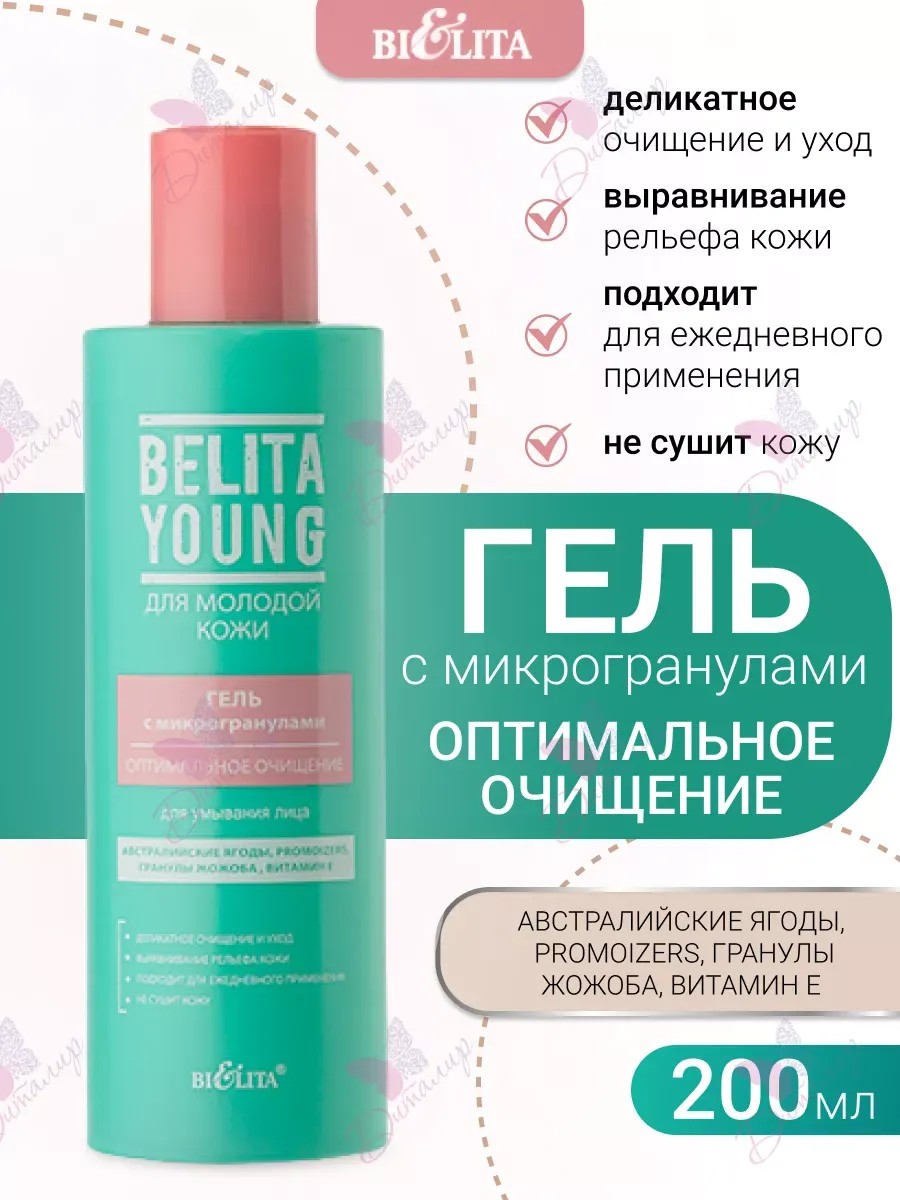Гель для умывания с микрогранулами Оптимальное очищение Belita Young БелитаАвстралийские ягоды, Promoizers, гранулы жожоба, витамин Ею - Деликатное очищение и уход - Выравнивание рельефа кожи - Подходит для ежедневного применения - Не сушит кожу Гель тщательно очищает кожу от загрязнений, не оставляя чувства стянутости. Ультрамягкие микрогранулы жожоба деликатно массируют кожу, способствуют очищению пор, улучшают цвет лица. Натуральный увлажнитель Promoizers поддерживает необходимый гидробаланс кожи. Экстракт австралийских ягод увлажняет и питает кожу, делает ее сияющей и более здоровой.