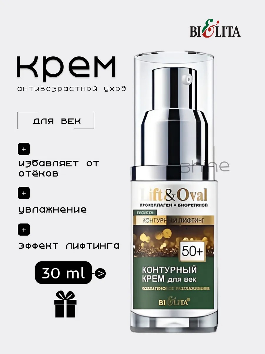Белита Контурный крем для век Коллагеновое разглаживание 50+ Проколлаген + Биоретинол Lift&Oval эффективно укрепляет область вокруг глаз, восстанавливает увлажнение кожи и разглаживает мелкие морщинки.