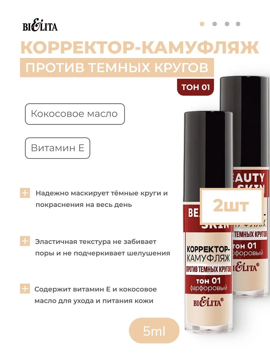 Белита Корректор-камуфляж от темных кругов тон 01 (фарфоровый) 2шт