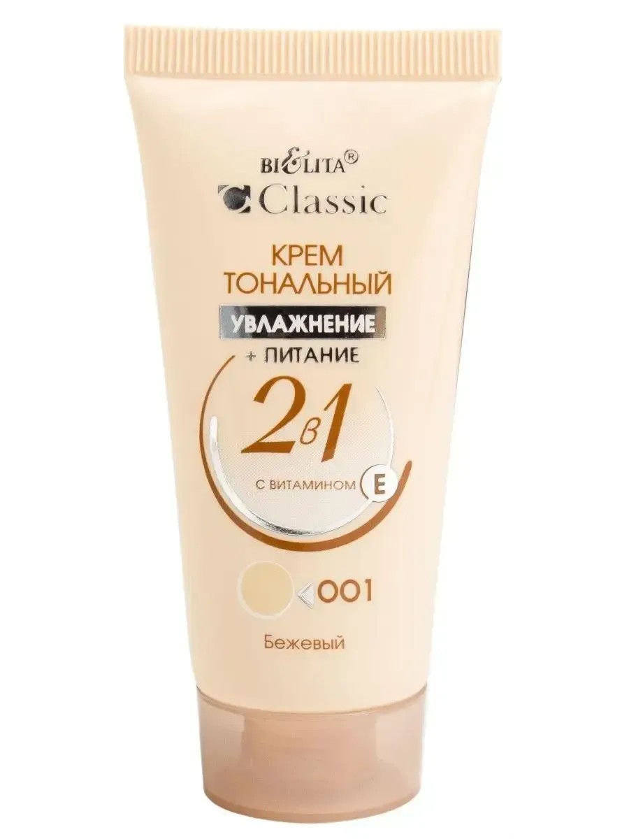 Белита, Крем тональный Classic Увлажнение+питание 2 в 1 тон 001 бежевый 30 мл, 1 шт. Крем выравнивает цвет лица, скрывает признаки усталости.