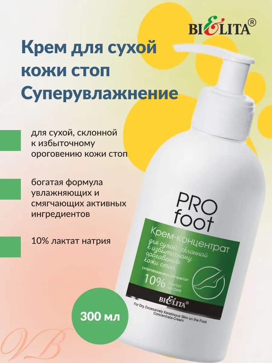 PRO FOOT Крем-концентрат для сухой, склонной к избыточному ороговению кожи стоп. Эффективный крем-концентрат с богатой формулой увлажняющих и смягчающих активных ингредиентов, предназначен для ухода за чрезмерно сухой и склонной к гиперкератозу кожей стоп. Лактат натрия — натуральный увлажняющий фактор, восстанавливает защитный слой кожи, обладает высокими влагоудерживающими и освежающими характеристиками, повышает барьерные функции рогового слоя эпидермиса. Масло кокосовое обладает прекрасным восстанавливающим действием, увлажняет, смягчает и питает кожу. Регулярное применение обеспечит контроль за мягкостью ваших стоп. Применение: наносите на сухую кожу стоп ежедневно.