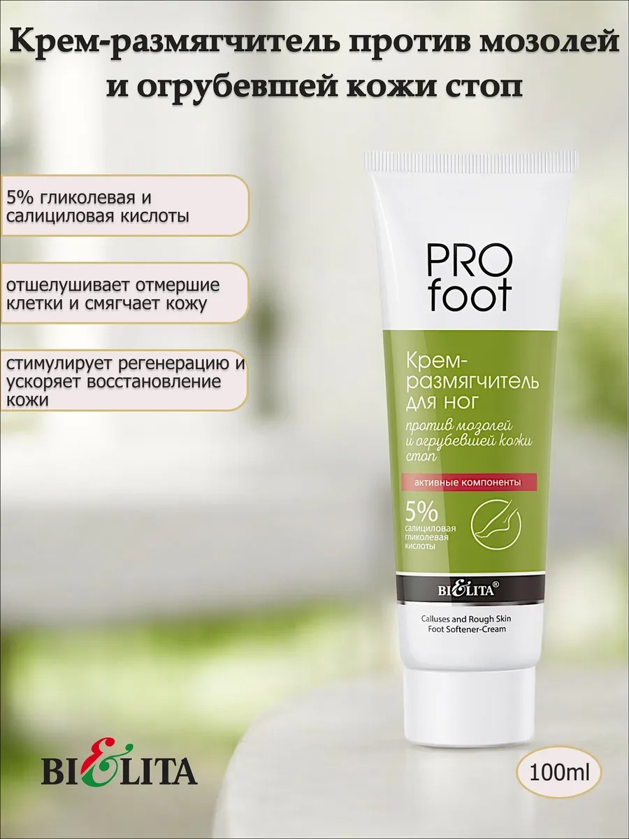 | Полное наименование товара | Крем-размягчитель для ног против мозолей и огрубевшей кожи стоп 100мл. Линия Pro Foot. Belita |
