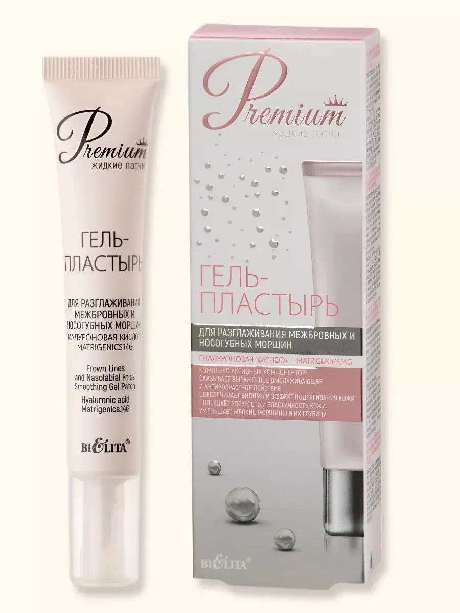 Гель-пластырь для разглаживания межбровных и носогубных морщин 20 мл. Активные компоненты: гиалуроновая кислота, Matrigenics.14G. Комплекс активных компонентов оказывает выраженное омолаживающее и антивозрастное действие, обеспечивает видимый эффект подтягивания кожи, повышает упругость и эластичность, уменьшает мелкие морщины и их глубину. Применение: нанесите тонким ровным слоем на участки лица (межбровные и носогубные складки), выдержите не менее 15-20 минут до полного высыхания, затем аккуратно снимите образовавшуюся пленку по направлению снизу-вверх. Рекомендуется использовать 1-2 раза в неделю. Сделано в Беларуси.