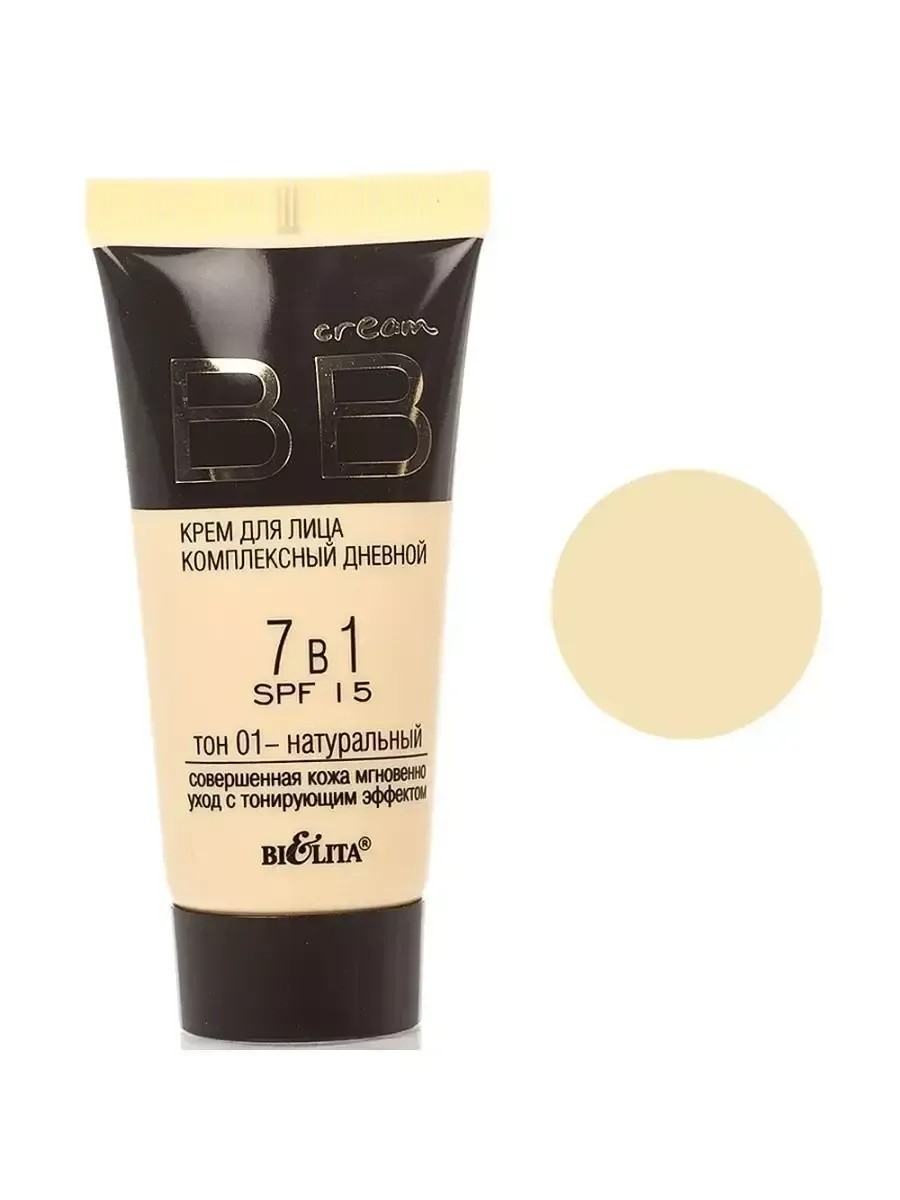 Крем-тон ВВ крем для лица 7в1 тон 01. BB-крем - современный многофункциональный крем, сочетающий в себе совершенный уход: безупречно выравнивает тон и поверхность кожи; интенсивно увлажняет; активно питает; разглаживает морщинки; придает сияние коже; защищает кожу от солнечных лучей; некомедогенно.