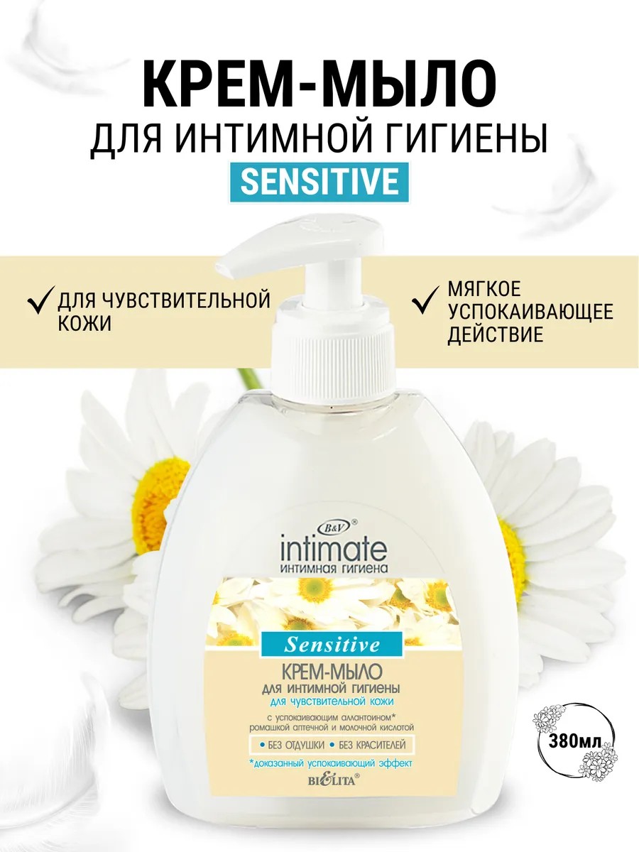 Чувствительная кожа интимных зон нуждается в особенно деликатном очищающем уходе. Если ваша кожа склонна к появлению воспалений, покраснений или зуда, выбирайте крем-мыло Body Care Sensitive от белорусской торговой марки Belita, которое как нельзя лучше поухаживает за ней. Косметическое средство будет полезным после бритья или депиляции, так как оно содержит противомикробный триклозан, который предупредит попадание инфекций, а также успокаивающие компоненты.