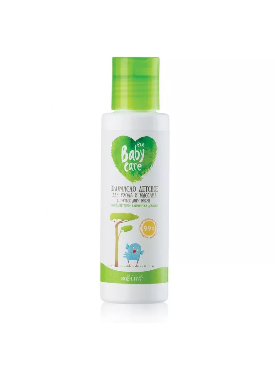 Belita Baby Care Eco-Oil for baby care and massage from the first days of life, 105 ml, 1 pc. Almond and apricot kernel oils nourish, soften, and soothe baby's skin, restore its protective barrier, and prevent dryness. Phytoceramides with sea buckthorn oil relieve flaking and have a regenerating and antimicrobial effect.