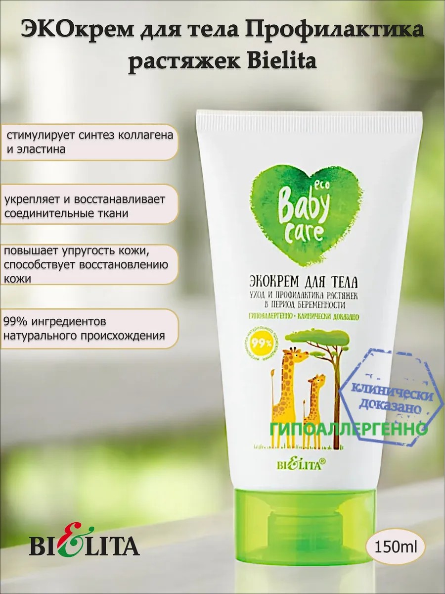 | Полное наименование товара | Экокрем для тела Уход и профилактика растяжек в период беременности 150мл. Линия Baby Care. Belita |