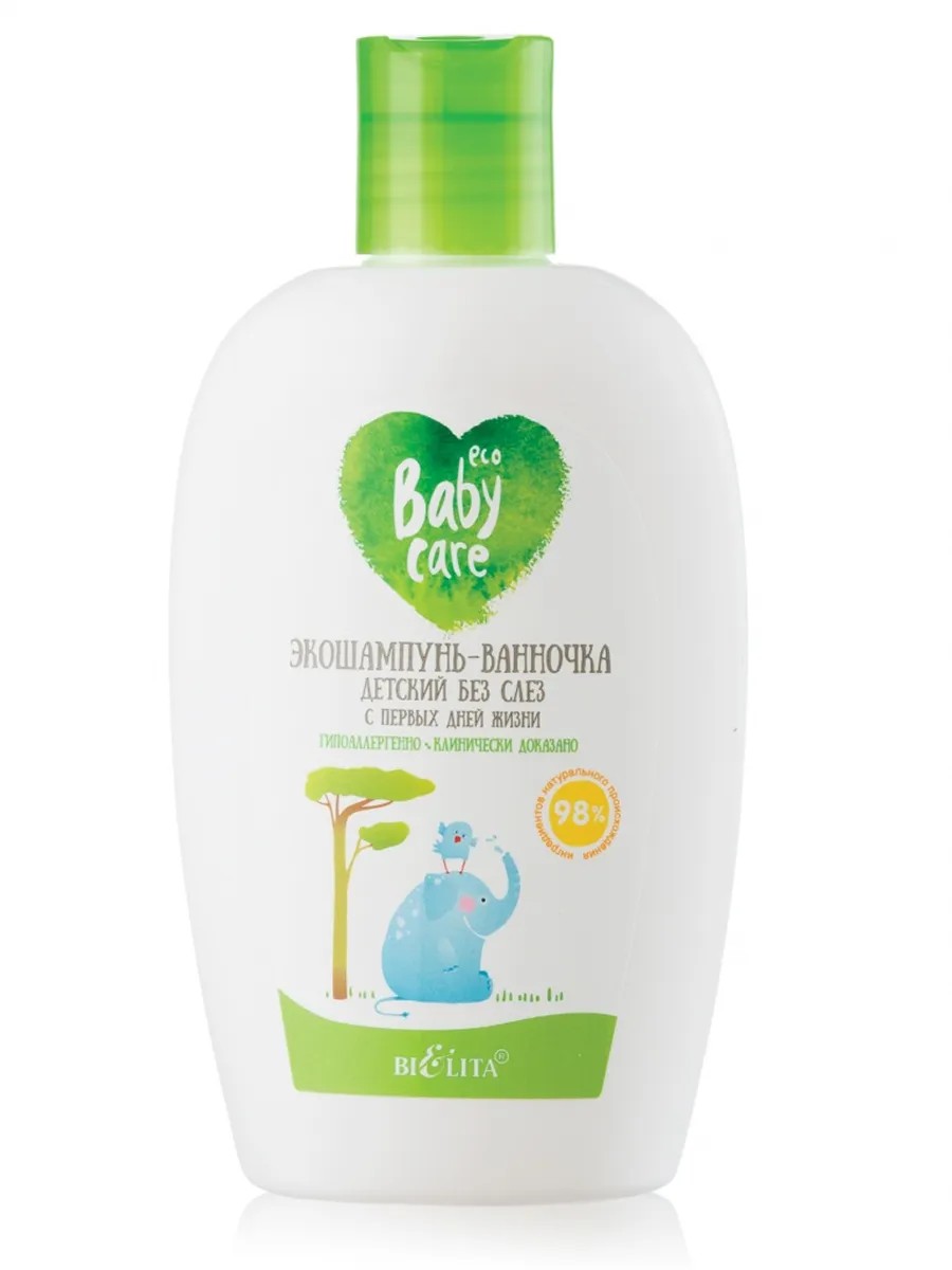 ECO-SHAMPOO-BATH from the Belarusian manufacturer of decorative and care cosmetics Belita is designed for gentle cleansing of the hair and delicate skin of a baby when bathing him in a baby bath from the first days of life.