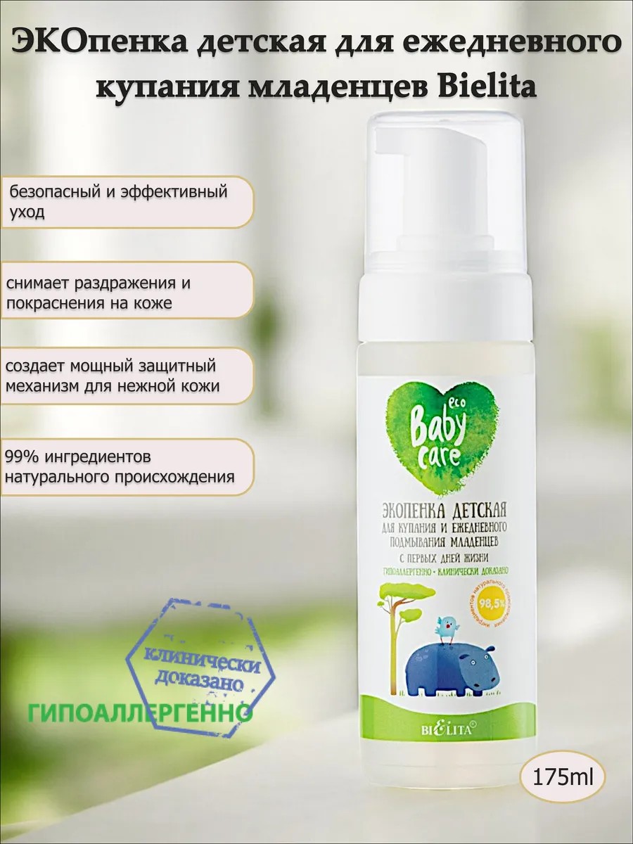 | Полное наименование товара | Экопенка детская для купания и ежедневного подмывания младенцев с первых дней жизни 175мл. Линия Baby Care. Belita |