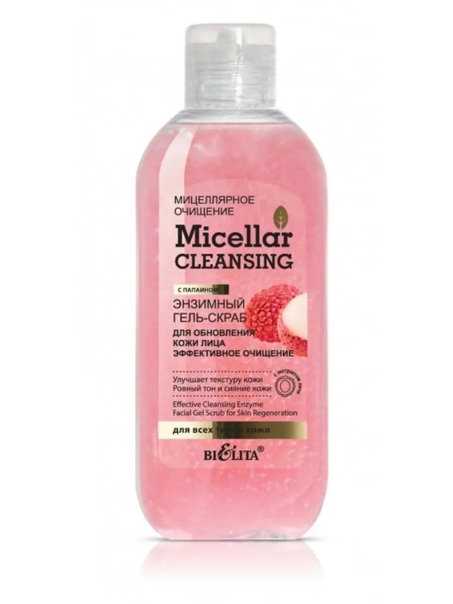 Litchiderm Enzyme Gel Scrub for Facial Skin Renewal Effective Cleansing with Papain Micellar Cleansing is an effective way to deeply cleanse the skin.