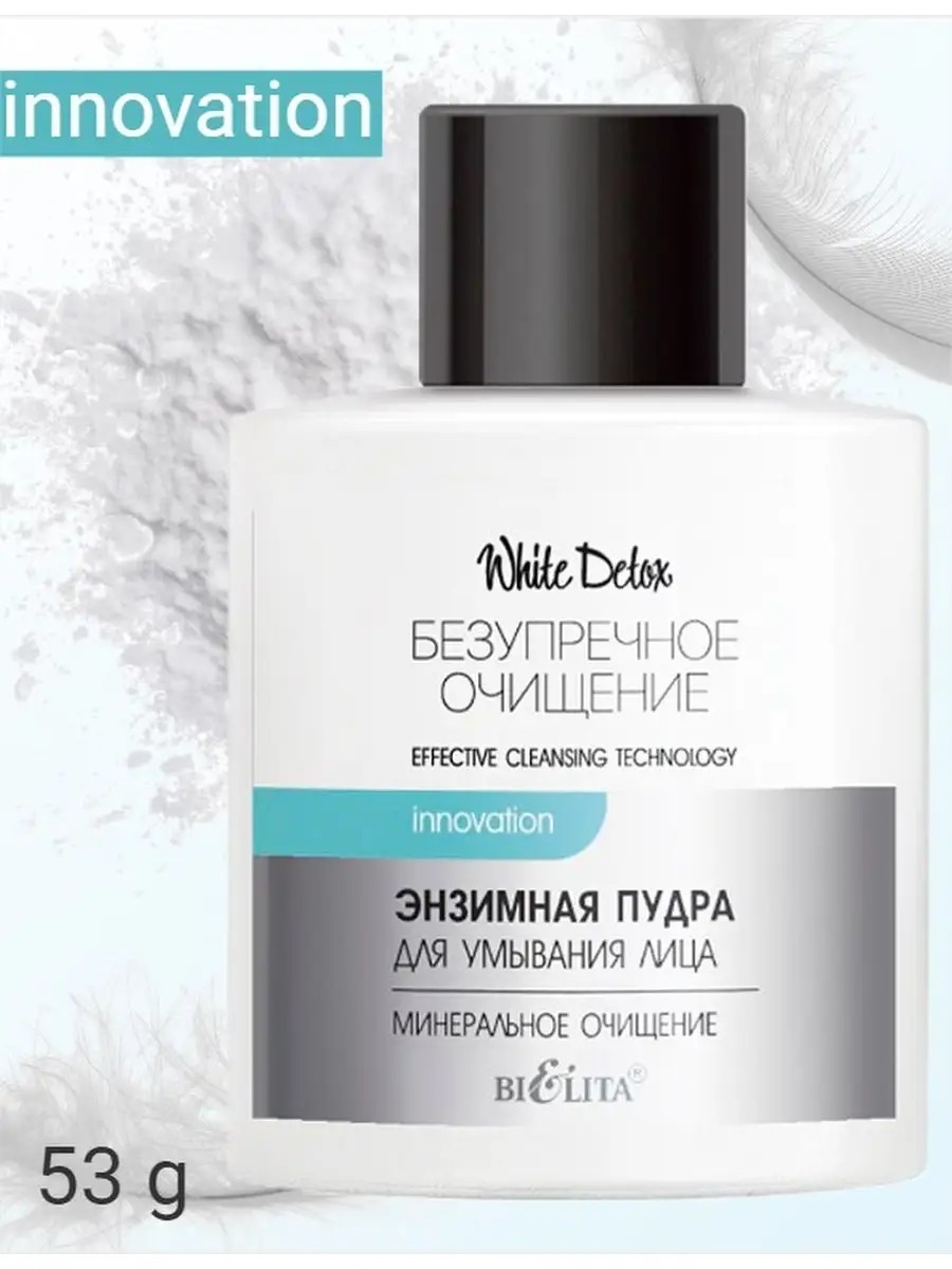 White Detox Belarusian Enzyme Face Wash Powder Mineral Cleansing 53g. This enzyme powder is designed for gentle, deep cleansing of the skin. Contains papaya enzymes, which promote exfoliation of dead skin cells and effectively remove impurities from the skin's surface, even out skin texture, leaving it soft, smooth, and supple. White charcoal effectively cleanses the skin, absorbs impurities, toxins, and sebum, mattifies the skin, providing a feeling of absolute comfort. Directions: Pour a small amount of powder into your palm, add a small amount of water (in a 1:1 ratio), lather with your hands, and apply to a damp face. Massage for 1-2 minutes, then rinse with water. CAUTION: Avoid getting moisture in the bottle.