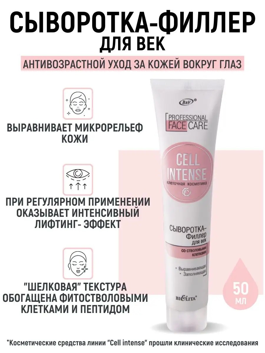 Кожа вокруг глаз требует особого ухода, ведь она не только более нежная и сухая, но и не содержит сальных желез и мускулов. К тому же, область вокруг глаз регулярно находится в движении. Для универсального ухода за чувствительной и зрелой кожей великолепно подойдет сыворотка от косметического бренда Belita Cell Intense. Средство содержит активные вещества, которые эффективно омолаживают кожу. Регулярное использование уберет припухлость и темные круги. Богатая формула, разработанная из активных компонентов, эффективно увлажняет, придает мягкость, эластичность и здоровый вид.