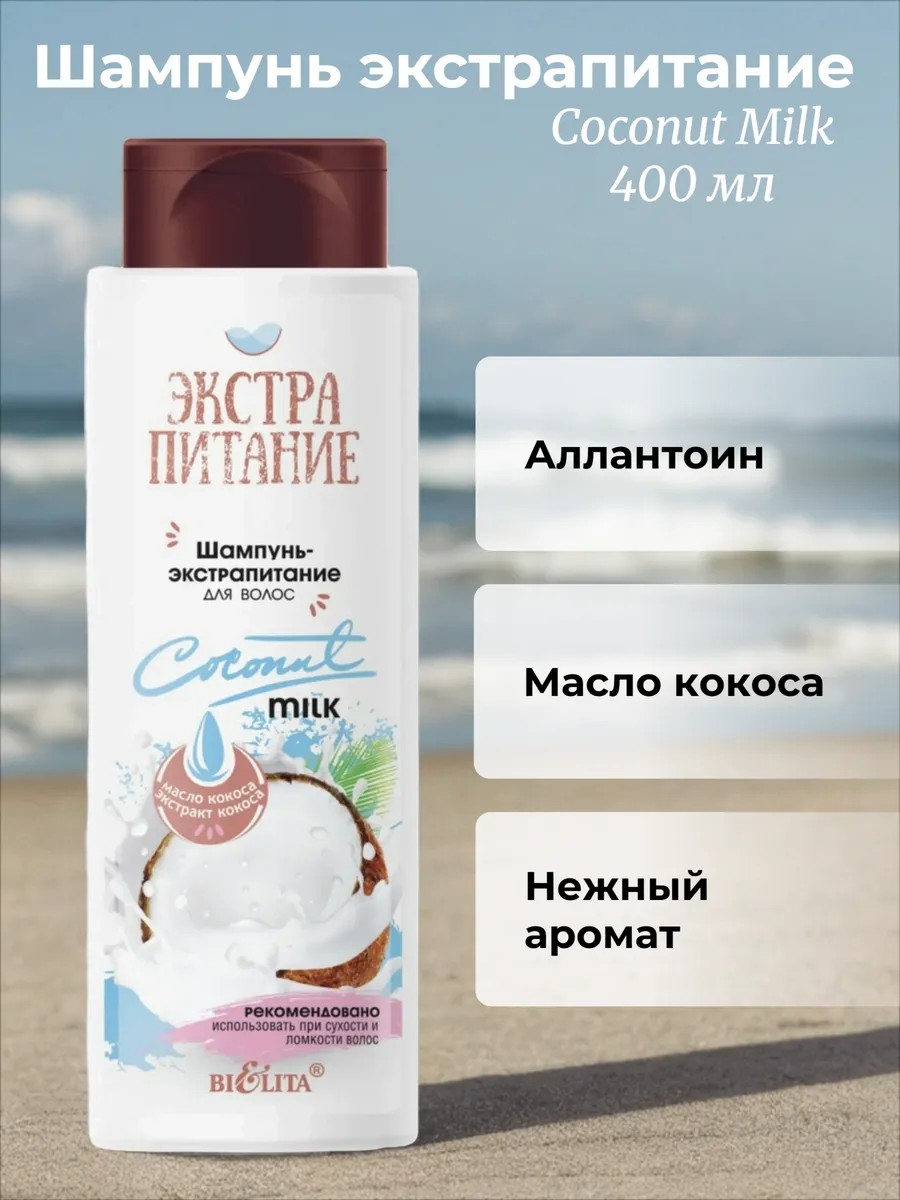 Coconut Milk Extra-Nourishing Shampoo gently cleanses hair and scalp of everyday impurities and styling products, providing gentle care for hair, imparting captivating beauty and radiant shine. This complex of active ingredients: nourishes hair and scalp with essential nutrients, strengthens hair, imparting captivating shine, promotes deep hydration and restores hair along the entire length, and prevents frizz, split ends, and subsequent breakage.