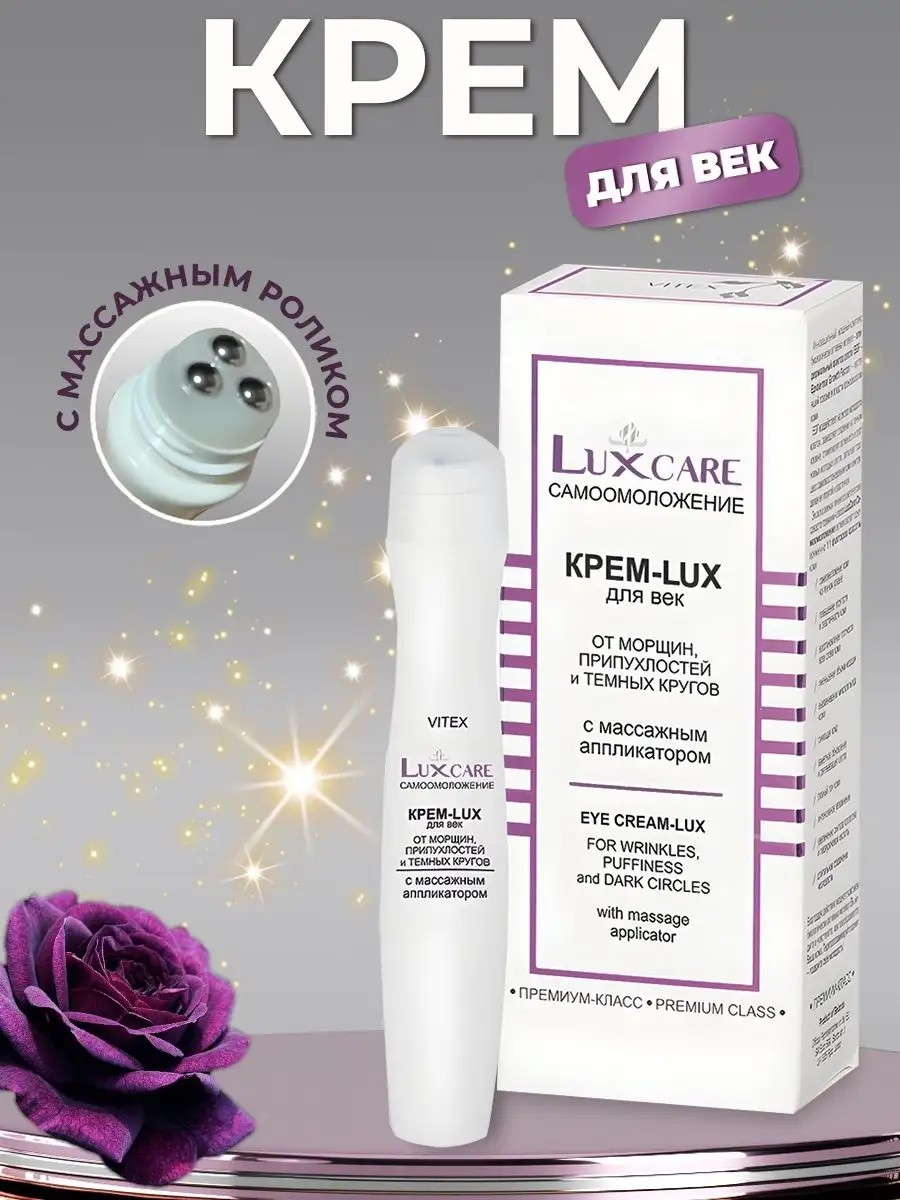 Крем для век и глаз антивозрастной от морщин и припухлостей LuxCare от белорусского производителя Белита Витэкс- это средство для ухода премиум-класса с массажным аппликатором. Супер продукт с роликом для интенсивного самомоложения содержит эпидермальный фактор роста (EGF-комплекс активных молекул). Замедляют старение и возвращают сияние и молодость! Доказано клинически! Борются с возрастными изменениями. Антивозрастные компоненты запускают процессы самообновления. Роликовый лифтинг крем для (под, вокруг)области глаз предназначен для омоложения и быстрого anti-age эффекта. Легкий и невесомый бьюти-продукт восстанавливает необходимый уровень увлажненности. Содействует уменьшению отеков или припухлостей, борется с темными кругами и мешками. Устраняет морщины, подтягивает. Подходит для всех возрастов, начиная от 30 лет: 35, 40 и 45; более зрелой коже: 50, 55 или 60 лет. Ролик в увлажняющем геле охлаждает и тонизирует, способствует усилению микроциркуляцию, усиливает действие активных веществ с кофеином. Рекомедуется поместить косметический продукт в холодильник за 20 минут до использования. Избегайте попадания средства в глаза. Рельеф лица подтягивается и выравнивается. Гликолевая кислота выравнивает тон, способствует выработке эластина и коллагена. Именно они отвечают за обновление клеток, дарят гладкость и сияние. Гиалуроновая кислота создает невесомую защитную пленку, что препятствует испарению и потере влаги. Молекулы гиалуронки проникают глубоко в эпидермис. В результате увеличивается эластичность и упругость, повышается тургор. Масла возрождают липидный баланс. Питают и успокаивают, устраняют различные раздражения. Витамины и аминокислоты с пептидами ускоряют клеточное обновление и дарят коже энергию и жизненную силу! Уменьшаются припухлости и отеки! Эффект лифтинга не заставят себя ждать при ежедневном домашнем уходе! Антивозрастная питательная косметика витекс из Беларуси производится из качественного сырья и не хуже чем производства корея (корейская).