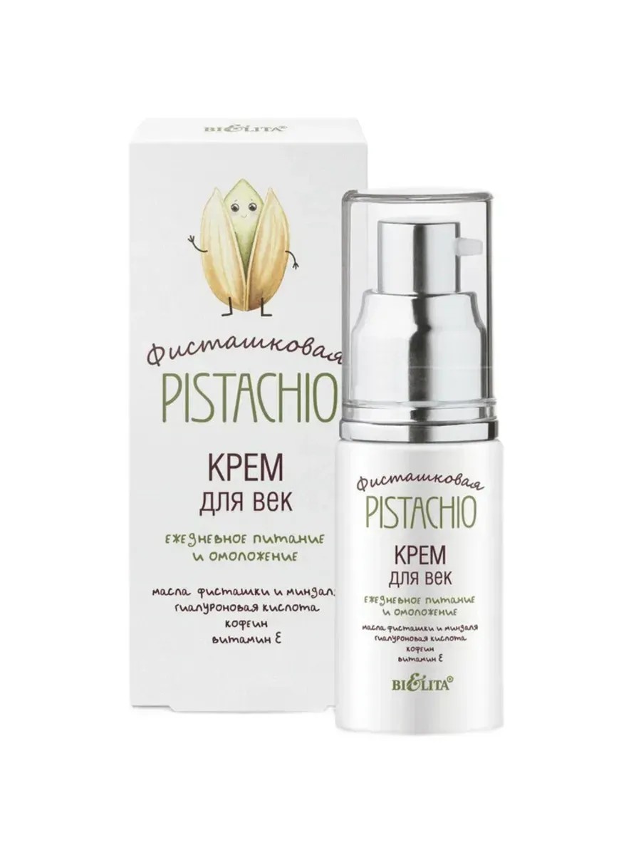 Белита, крем для век ежедневное питание и омоложение, 30 мл. Подарите себе идеальный уход с кремом для век Ежедневное питание и омоложение, специально созданным для улучшения состояния нежной кожи вокруг глаз. Активные компоненты. Масло фисташки глубоко питает кожу, придавая ей гладкость и бархатистость. Гиалуроновая кислота формирует тончайшую воздухопроницаемую пленку на поверхности кожи, удерживая влагу внутри, повышая упругость и эластичность. Кофеин тонизирует кожу, помогает сократить припухлость и уменьшить темные круги под глазами. Polylift активный ингредиент на основе протеинов сладкого миндаля - мгновенно выравнивает микрорельеф кожи, уменьшает морщины и создает эффект лифтинга. Витамин Е обеспечивает антиоксидантную защиту, предотвращая преждевременное старение кожи. Крем для век оказывает комплексный уход, который помогает коже вокруг глаз выглядеть свежей и сияющей ежедневно.