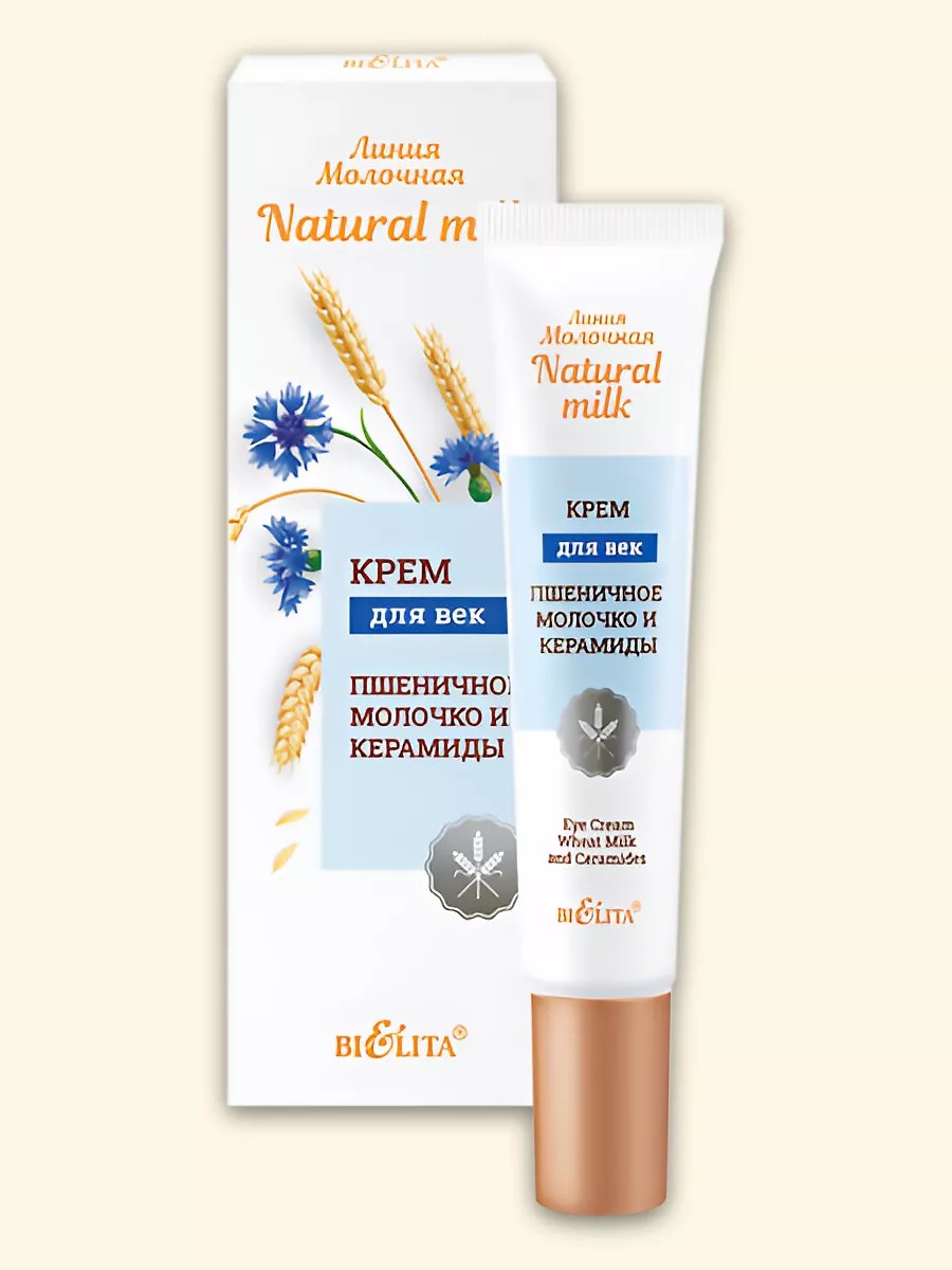 Wheat Milk and Ceramides Eye Cream is gentle, caring care for the delicate skin around your eyes. This cream combines the power of nature and innovative technologies for maximum results. Wheat germ extract and plant ceramides restore and strengthen the delicate skin of the eyelids, maintaining its firmness and elasticity. Hyaluronic acid provides deep hydration, creating a feeling of softness and comfort. Caffeine stimulates microcirculation, reducing puffiness and signs of fatigue. The unique Tens'Up component lifts and firms, making the look clearer and fresher. Directions: Apply morning and/or evening to cleansed eyelids. Made in Belarus.
