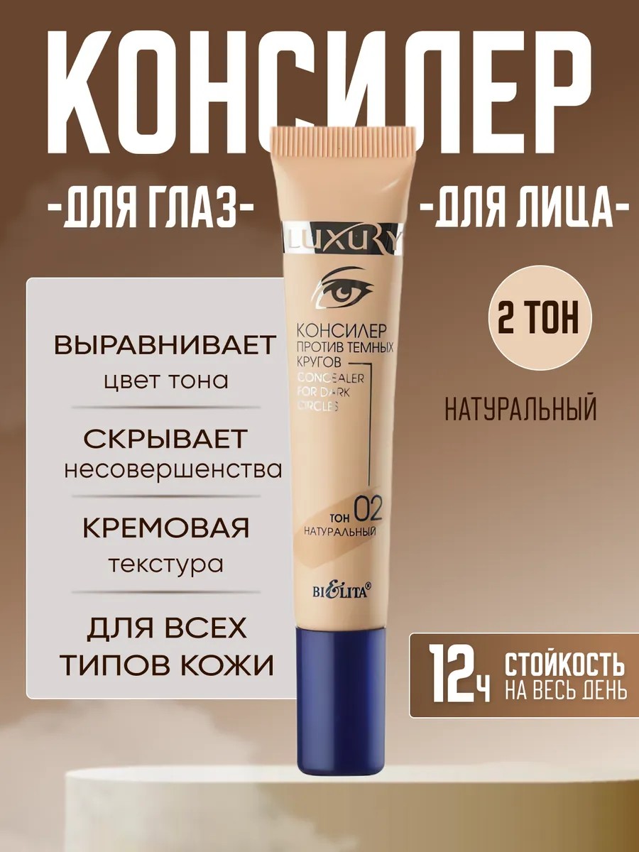 | Полное наименование товара | Консилер против темных кругов LUXURY, Тон 02 натуральный |