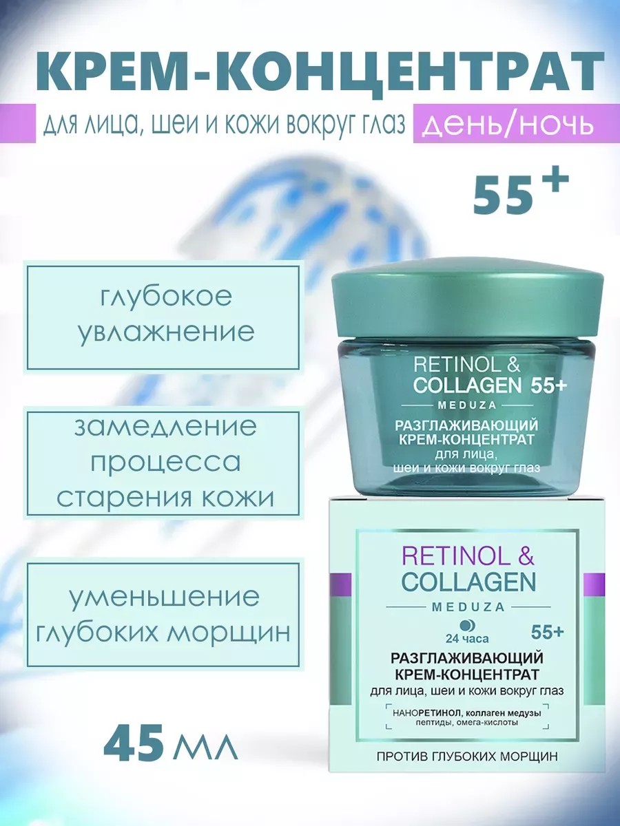 Коллаген медузы замедляет процессы старения, глубоко увлажняет, уменьшает количество и глубину морщин.