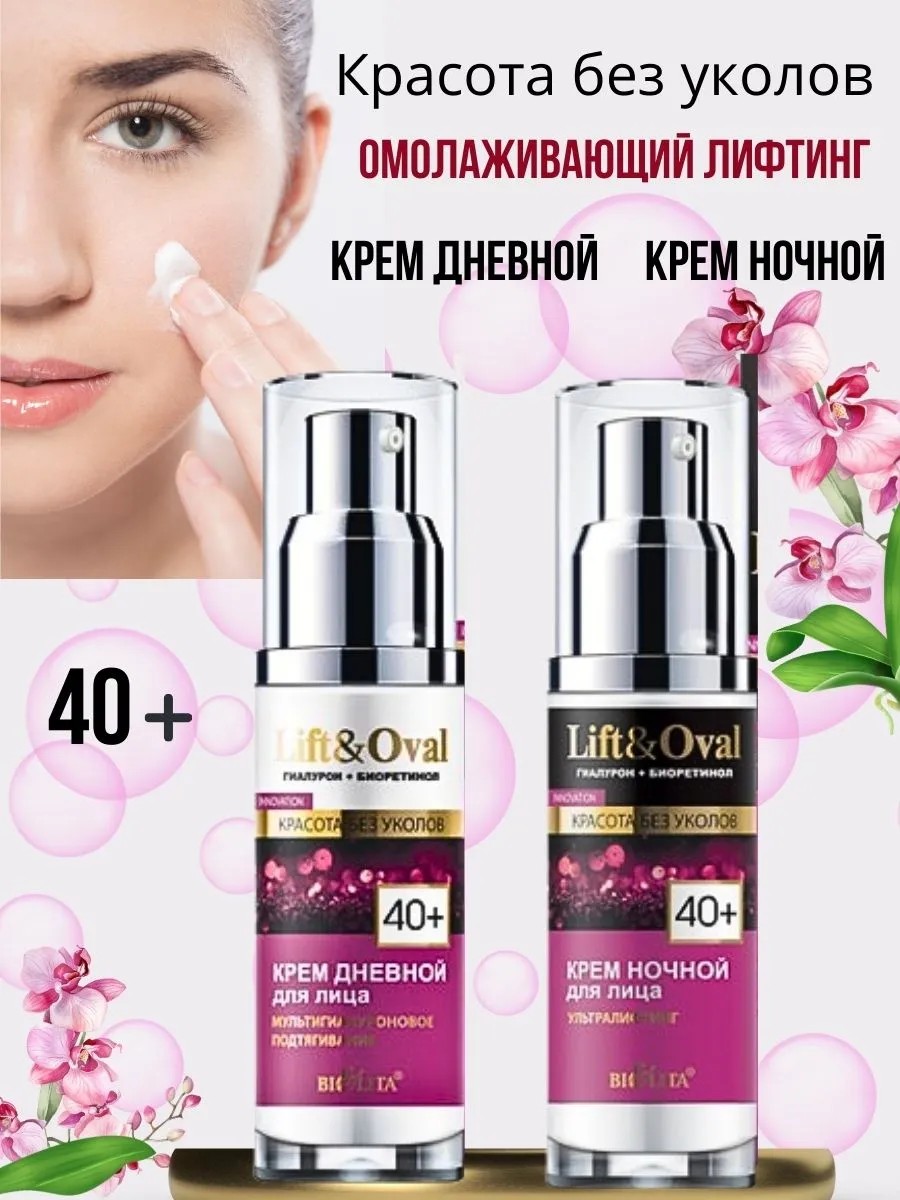 | Комплектация | Крем дневной для лица “Мультигиалуроновое подтягивание” Lift&Oval 40+ 50мл - 1шт.; Крем ночной для лица “Ультралифтинг” Lift&Oval 40+ 50мл - 1 шт. |