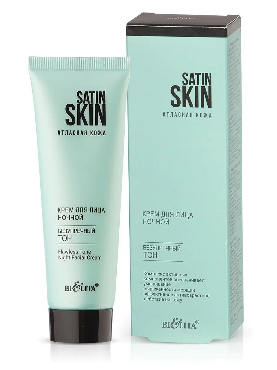 Night face cream "Flawless tone" SATIN SKIN. Satin skin. The complex of active ingredients provides: reduction of the appearance of wrinkles; effective anti-aging effect on the skin.