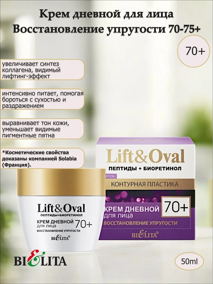 | Полное наименование товара | Крем дневной для лица “Восстановление упругости” 70+ 50мл. Линия Lift&Oval. Belita |