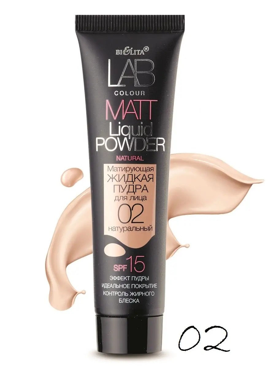 LAB Color Belita Mattifying Liquid Face Powder - powder effect - perfect coverage - oil-control. This mineral-based liquid powder conceals imperfections and evens out skin tone. Its soft, velvety texture evenly coats the face with a delicate veil, eliminating shine. Creates a weightless matte finish that is imperceptible on the skin, allows it to breathe and does not clog pores. Ingredients: water, cyclopentasiloxane, cyclohexasiloxane, ethylhexyl isononanoate, ethylhexyl methoxycinnamate, cetyl alcohol, glyceryl stearate, PEG-75 stearate, ceteth-20, steareth-20, silica, cyclopentasiloxane, dimethicone crosspolymer, phenyl trimethicone, propylene glycol, dimethicone / vinyl dimethicone crosspolymer, silica, butylene glycol, niacinamide, yeast and horse chestnut extracts, ammonium glycyrrhizate, panthenol, propylene glycol, zinc gluconate, caffeine, biotin, isopropyl myristate, Triticum vulgare (wheat) germ oil, Tocopheryl acetate, BHT, methylparaben, vinylpyrrolidone-ammonium acryloyldimethyltaurate copolymer, propylparaben, glyceryl stearate, fragrance, 2-bromo-2-nitropropane-1,3-diol.