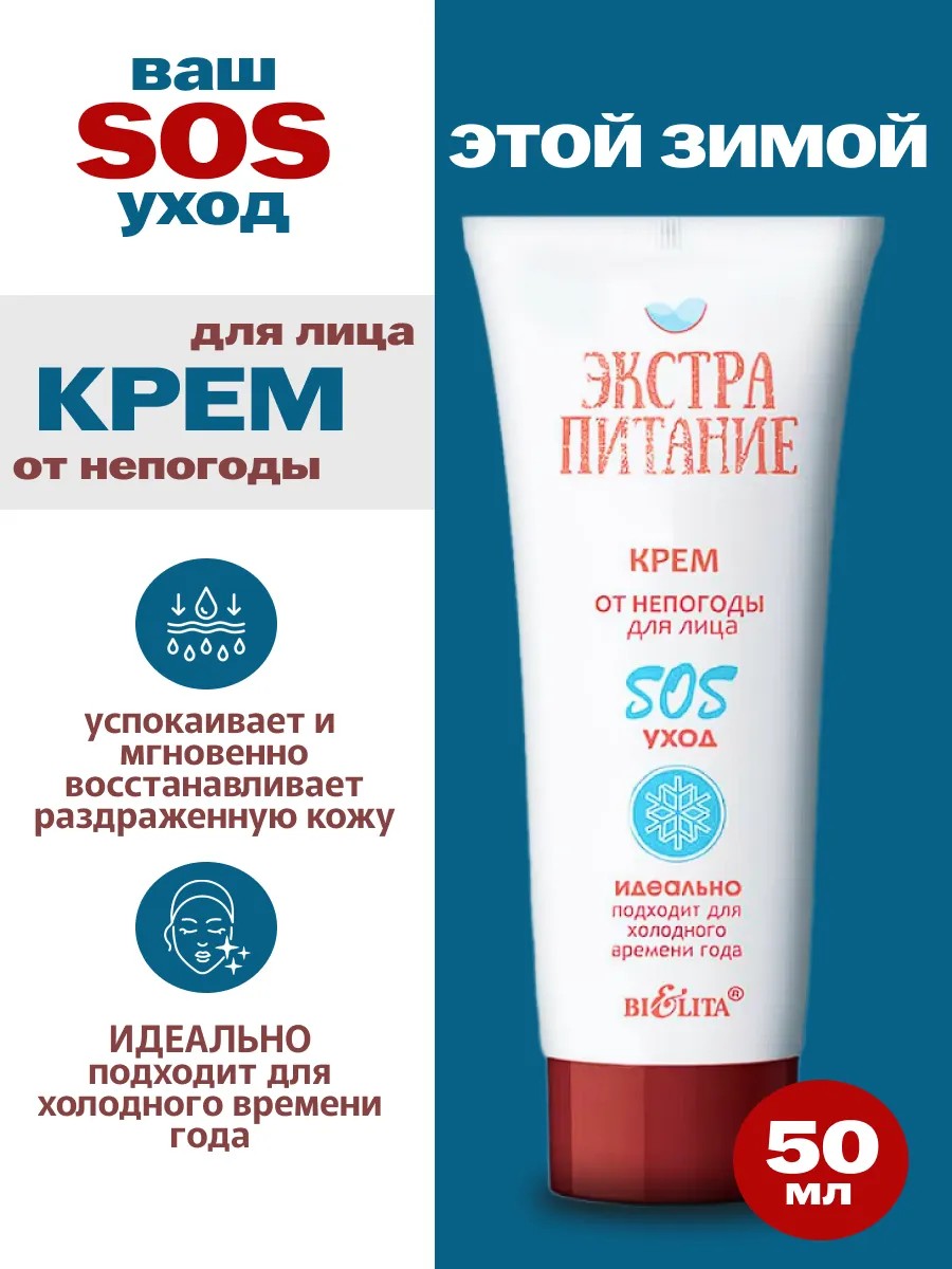 Уход за кожей в морозное новогоднее время года– это особый ритуал, который требует внимания и заботы. SOS cream от Belita поможет вам справиться с любыми неприятностями, которые могут принести холода. Товар произведен в Республике Беларусь на СП «БЕЛИТА» ООО