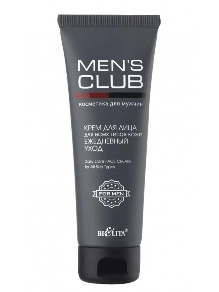 BELITA, Крем для лица Mens Club Ежедневный уход для всех типов кожи 75 мл, 1 шт. Крем для лица для мужчин - эффективное средство для ежедневного ухода. Интенсивно увлажняет, снимает ощущение сухости и стянутости, предотвращает преждевременное появление морщин. Активные компоненты: аллантоин, д-пантенол, масло косточек абрикоса поддерживают водный баланс кожи, успокаивают и смягчают. Кофеин заряжает энергией кожу, ускоряя ее восстановление и обновление. Растительный комплекс Polyplant Anti-Wrinkles стимулирует синтез коллагена, способствует восстановлению эластичности кожи, разглаживает морщины.