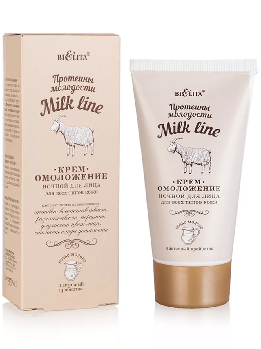 Крем для лица ночной омолаживающий Milk Line.Крем-омоложение заботится о красоте кожи во время ночного сна, стимулирует обменные процессы в клетках и способствует регенерации. Формула с козьим молоком и активным пробиотиком обеспечивает интенсивное питание, насыщает кожу витаминами, разглаживает морщины.