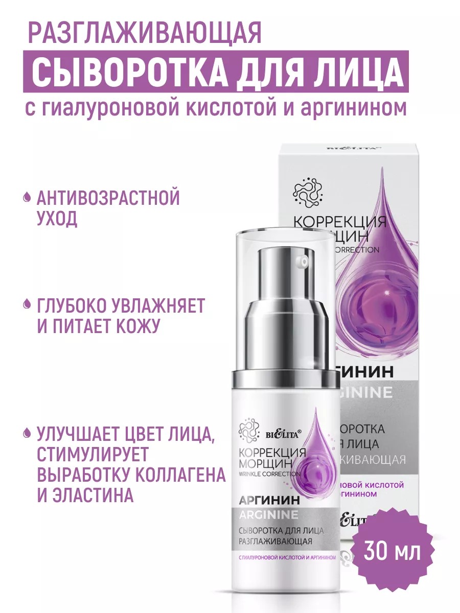 Аргинин стимулирует выработку коллагена, разглаживает морщины, улучшает цвет лица. Придает «уставшей» коже свежесть и естественное сияние.