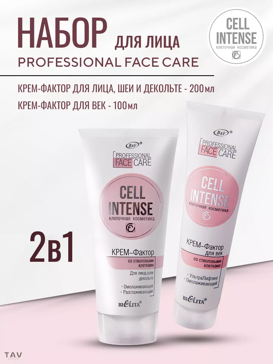 Профессиональный полноценный набор для ухода за лицом, шеей, декольте и век Cell Intense — линия профессиональных цитокосмецевтических препаратов, основанных на сочетании геропротекторного действия биодоступных растительных "стволовых клеток" Citrustem и пептида — фактора самообновления эпидермальных стволовых клеток Survixyl. Теоретически, стволовые клетки кожи человека способны к регенерации на протяжении свей жизни, тем не менее, с возрастом активность этих клеток угасает. В это время наша кожа нуждается в дополнительной стимуляции и защите. Набор состоит: КРЕМ-Фактор со стволовыми клетками для лица, шеи, декольте. Омолаживающий Разглаживающий, Мультиактивный антивозрастной крем 24-часового действия. Обогащен растительными стволовыми клетками и пептидами, которые стимулируют естественные процессы клеточного обновления. КРЕМ-Фактор для век со стволовыми клетками. УльтраЛифтинг - Омолаживающий. Эффективный крем для омолаживающего ухода за тонкой деликатной областью вокруг глаз. Возраст 35+, 40+, 45+, 50+, 55+, 60+