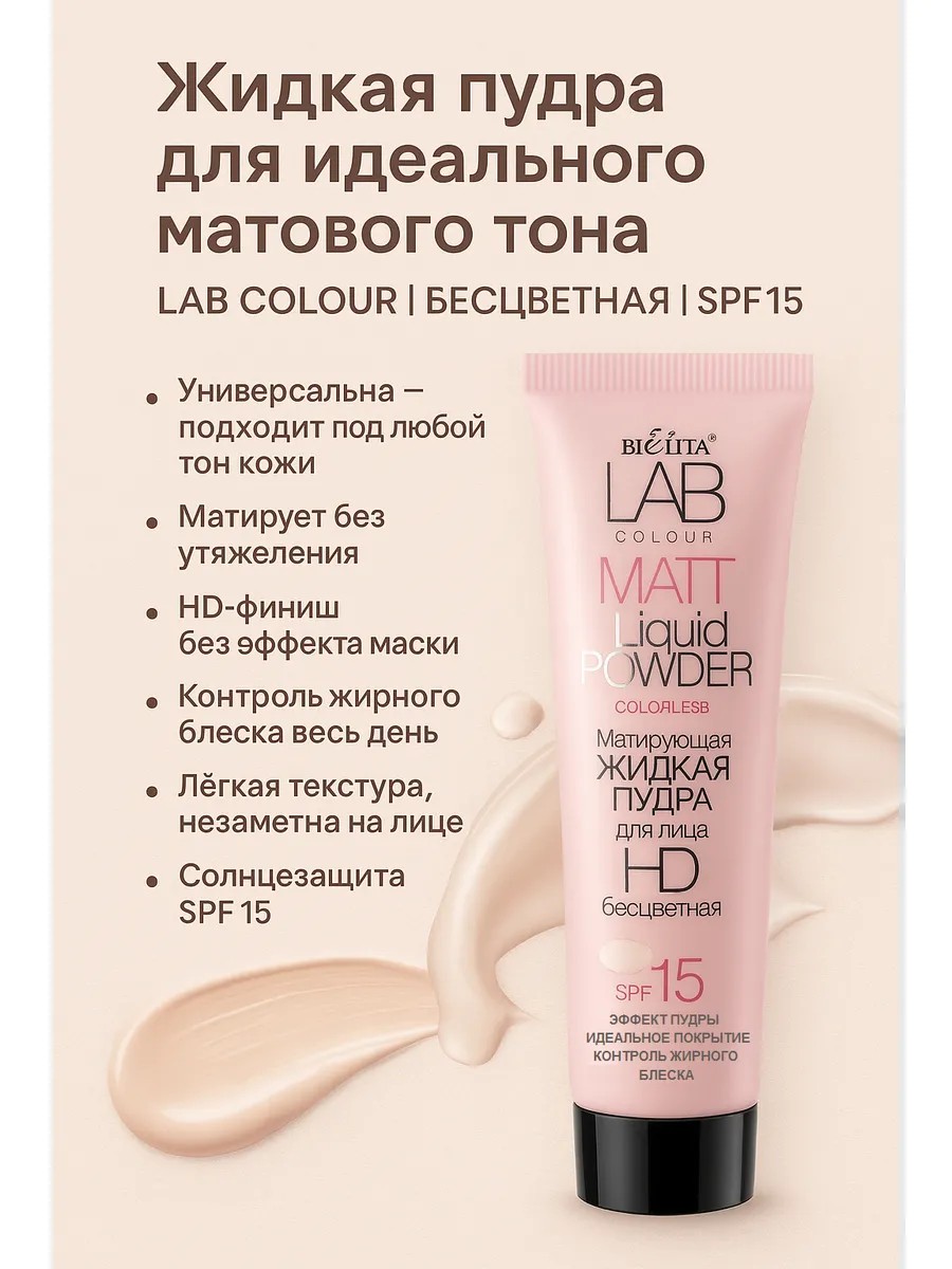 Белита Пудра жидкая матирующая LAB colour бесцветная