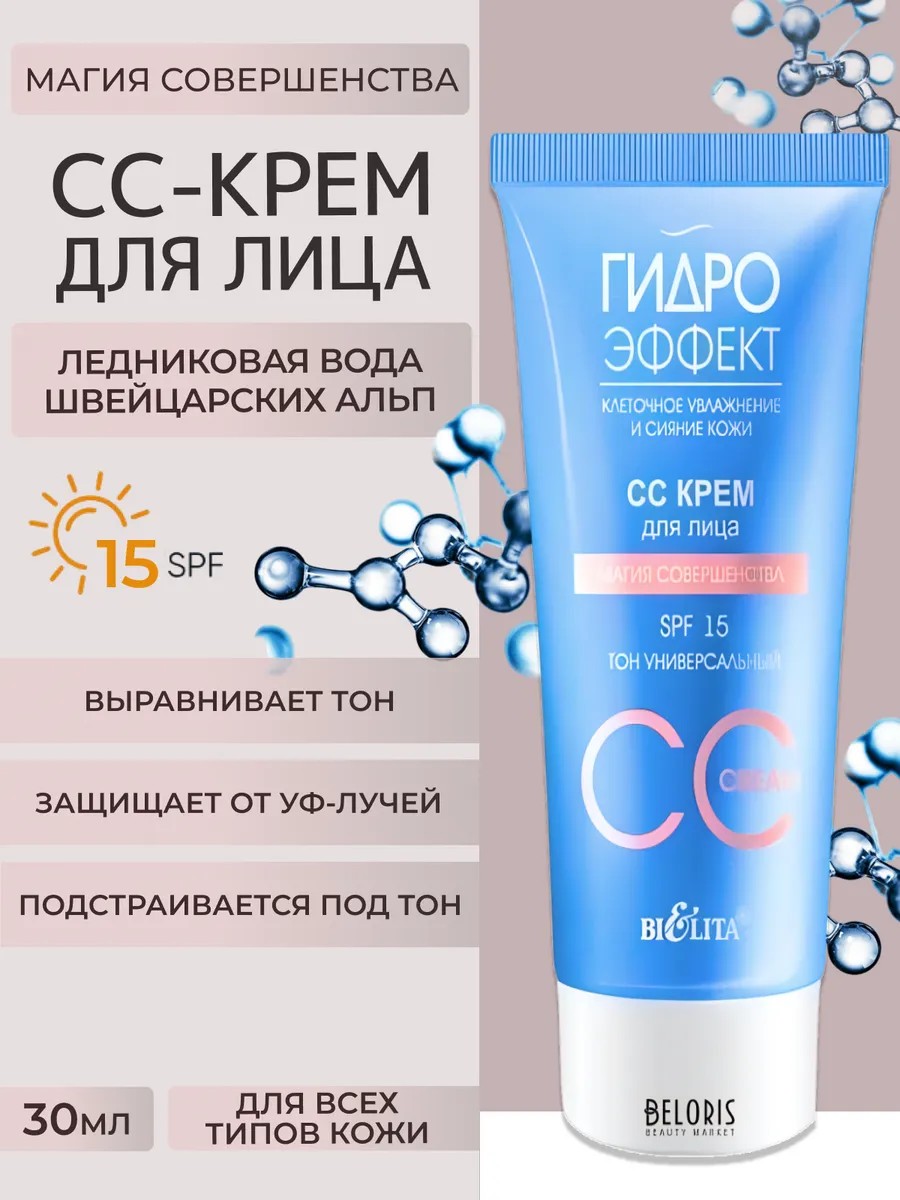 белита CC-крем для лица тон универсальный Магия совершенства Гидроэффект Spf 15 Белорусская косметика