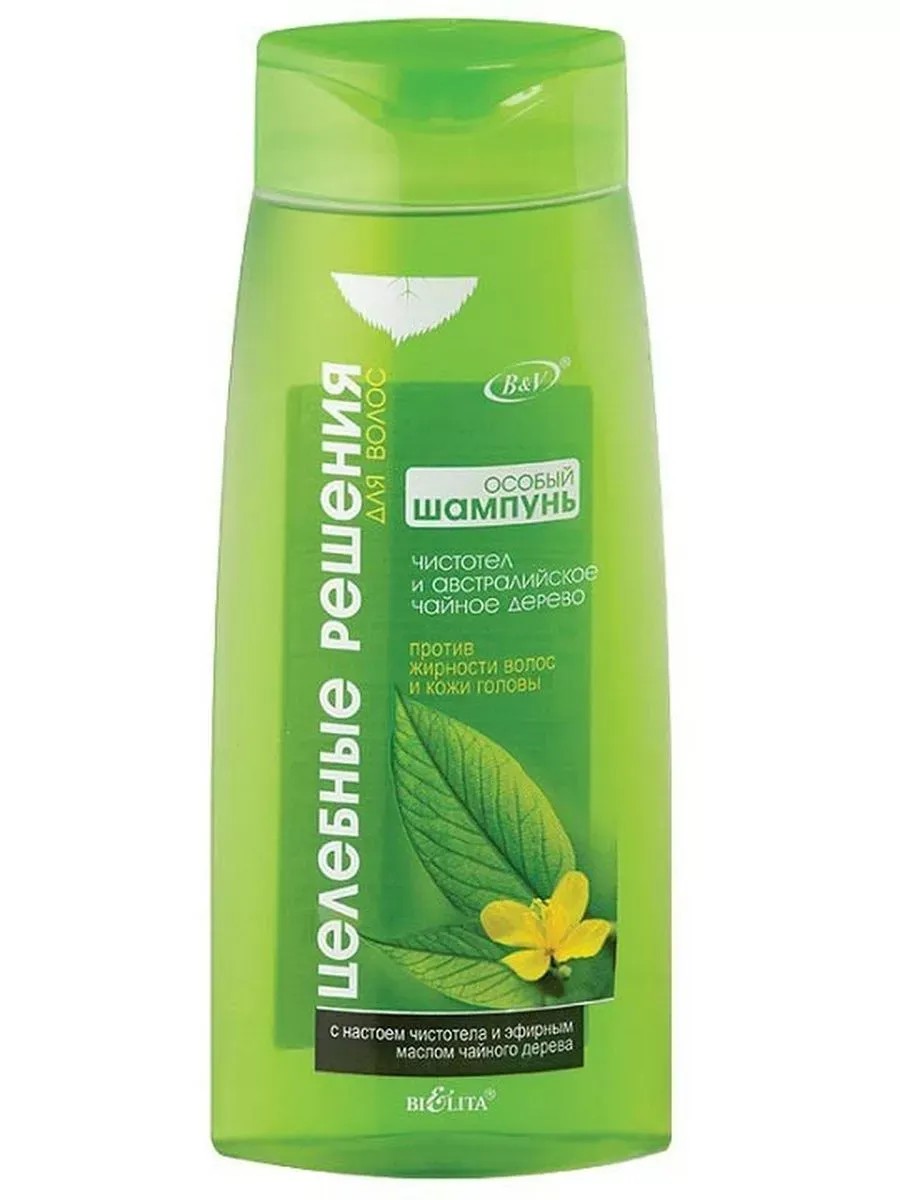 Белита ЦЕЛЕБНЫЕ РЕШЕНИЯ Особый Шампунь чистотел и австралийское чайное дерево, против жирных волос и кожи 480 мл. Жирные волосы имеют тонкую структуру, эластичны, обильно покрыты жиром и требуют частого мытья или особого ухода. Особый ШАМПУНЬ против жирности волос и кожи головы Чистотел и австралийское чайное дерево эффективно очищает кожу и волосы, склонные к быстрому загрязнению. Обладает приятным естественным ароматом чайного дерева. ЧИСТОТЕЛ устраняет жирность волос и кожи головы, укрепляет волосы. ЭФИРНОЕ МАСЛО ЧАЙНОГО ДЕРЕВА идеально для ухода за раздраженной, склонной к жирности, кожей головы. Регулярное применение шампуня: укрепляет волосяные луковицы; предотвращает потерю волос.
