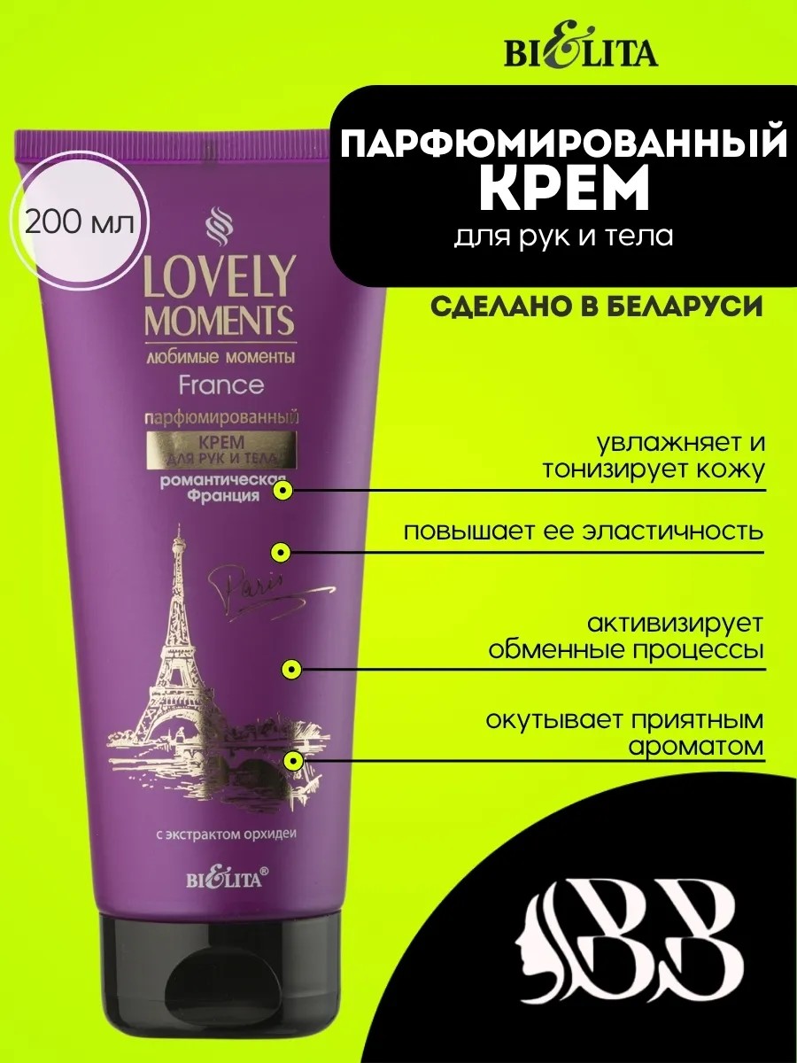 Enjoy exquisite care with the perfumed hand and body cream "Romantic France" from the Belita brand from the Lovely Moments series.