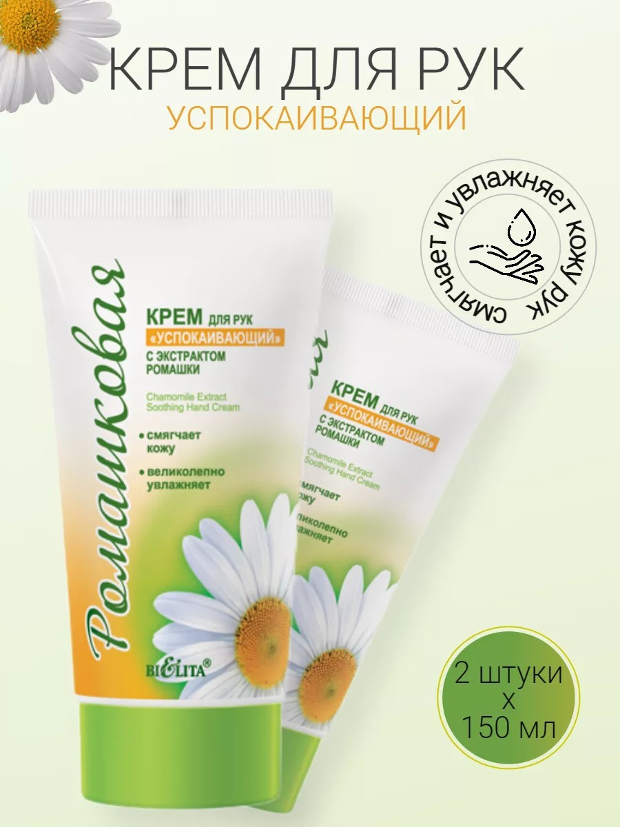 Soothing Hand Cream with Chamomile Extract. Containing chamomile extract and allantoin, this cream relieves irritation and has a soothing effect.