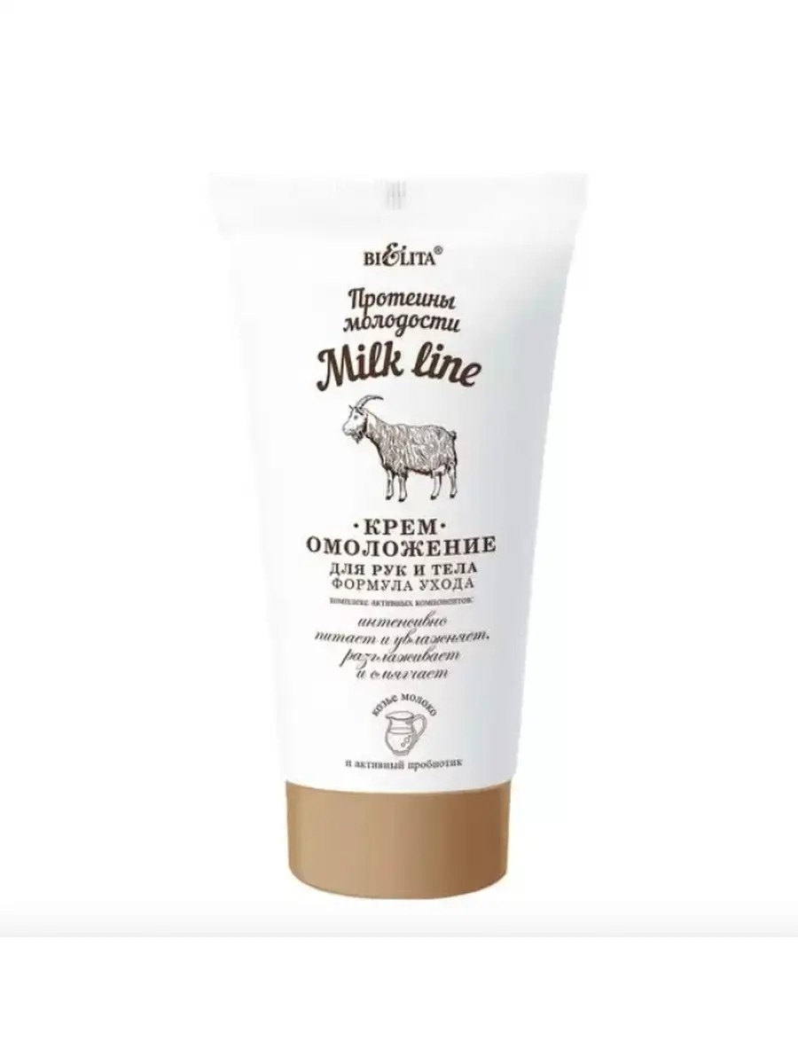 Belita, Rejuvenating Cream for Hands and Body, "Youth Proteins" Care Formula, 150 ml. Maintain youthful and healthy skin with Milk Line / Youth Proteins cosmetics. Goat's milk is a magnificent cosmetic product, the properties of which have been known since ancient times. It was called the elixir of life and beauty. Queen Cleopatra, who maintained her beauty for many years, always added goat's milk to her bath, after which her skin became soft and velvety, regaining elasticity and beauty. The cream has an incredibly soft, silky texture and is quickly absorbed without leaving a feeling of dryness or tightness. Ingredients: Water, Glyceryl Tricaprylate/Caprate, Cetearyl Alcohol, Polysorbate-60, PEG-100 Stearate, Ceteareth-25, Glycerin, Cyclopentasiloxane, Cyclohexasiloxane, Cocos Nucifera (Coconut) Oil, Persea Gratissima (Avocado) Oil, Myristyl Lactate, Copolymer.