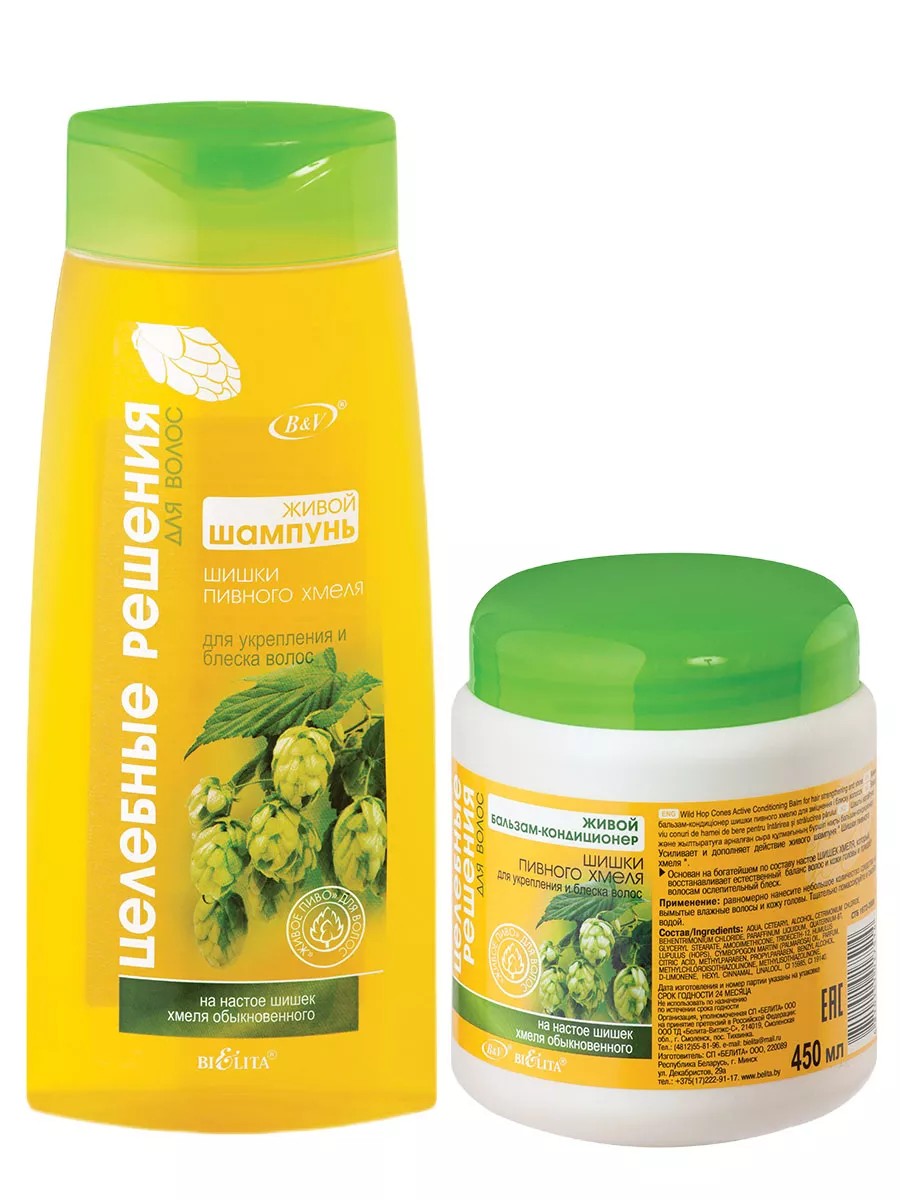БЕЛИТА Целебные решения Шампунь Шишки пивного хмеля 480 мл+Бальзам