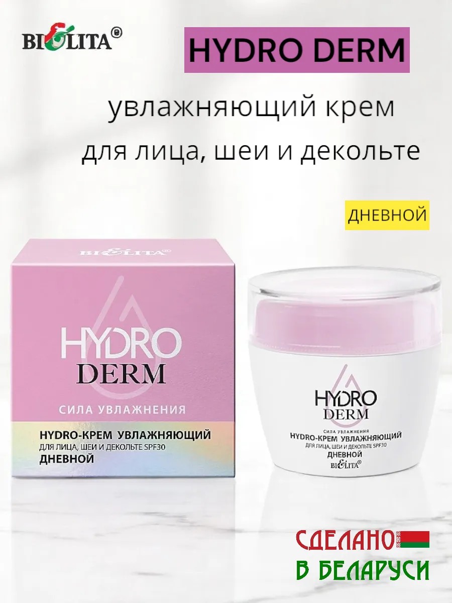 Hydro крем увлажняющий для лица, шеи и декольте SPF30 дневной HydroDERM от белорусского бренда косметики Белита. Защита, питание и сияние!