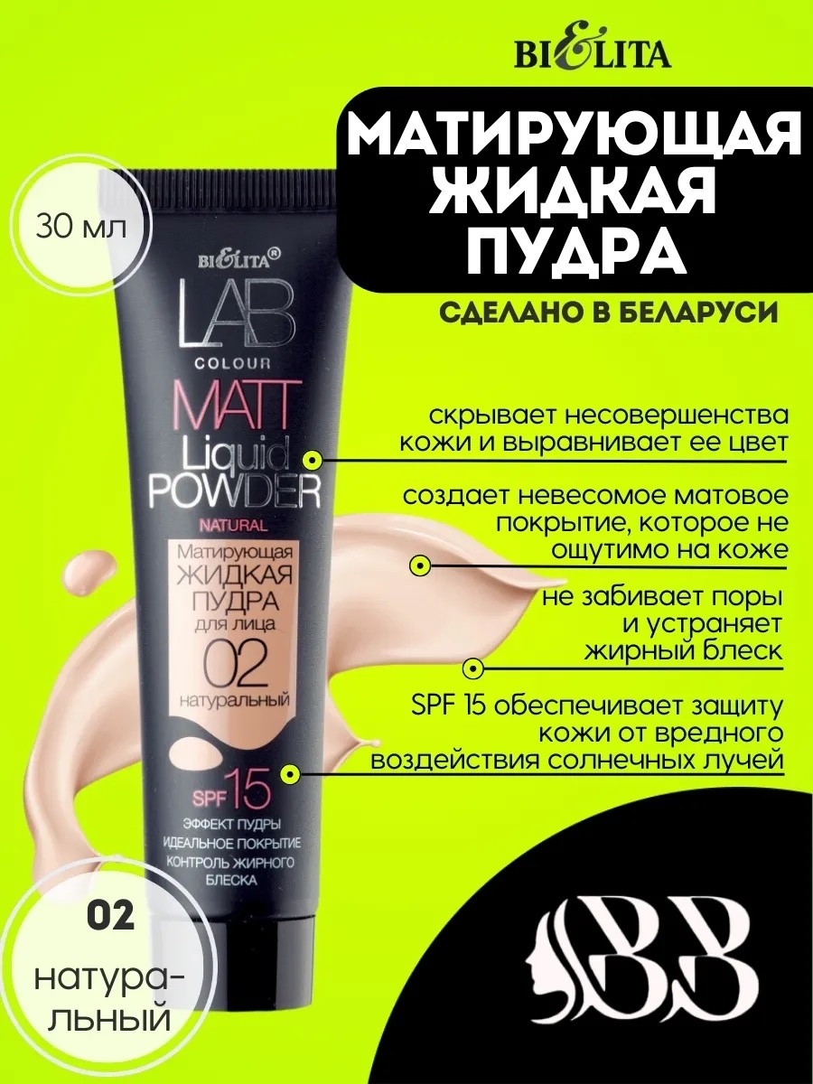 Белита Жидкая пудра для лица LAB colour 02 натуральный, 30 мл