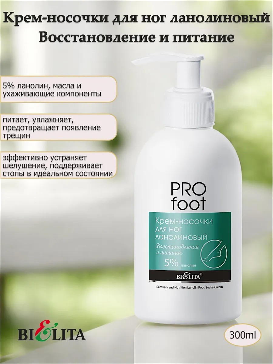| Полное наименование товара | Крем-носочки для ног ланолиновый “Восстановление и питание” 300мл. Линия Pro Foot. Belita |