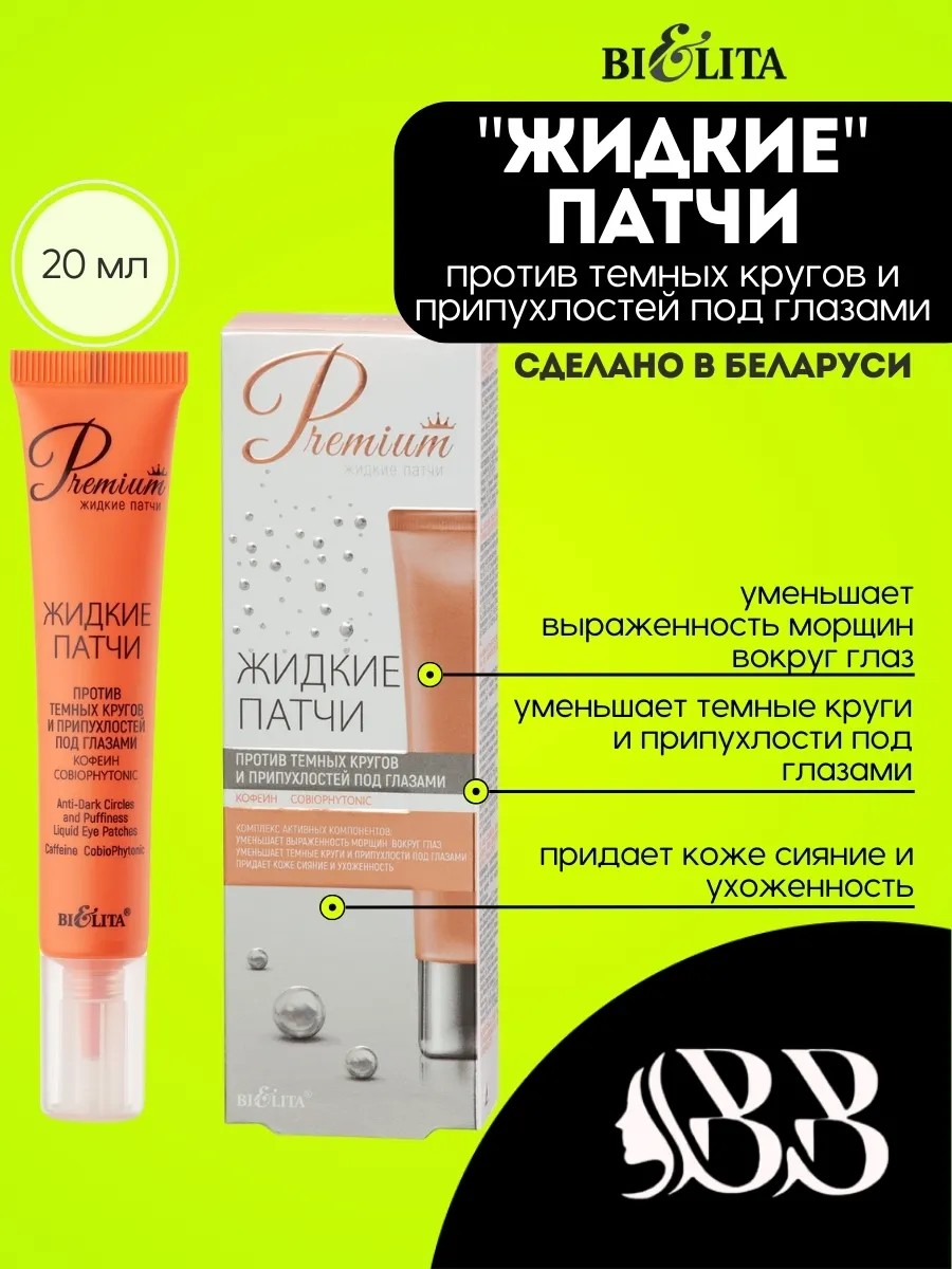 Жидкие патчи Premium против темных кругов и припухлостей под глазами – это идеальное решение для тех, кто заботится о своем внешнем виде и хочет вернуть коже свежесть и отдохнувший вид. Бренд Bielita представляет свою новинку в объеме 20 мл, которая сочетает в себе инновационные технологии и натуральные компоненты для максимального эффекта.