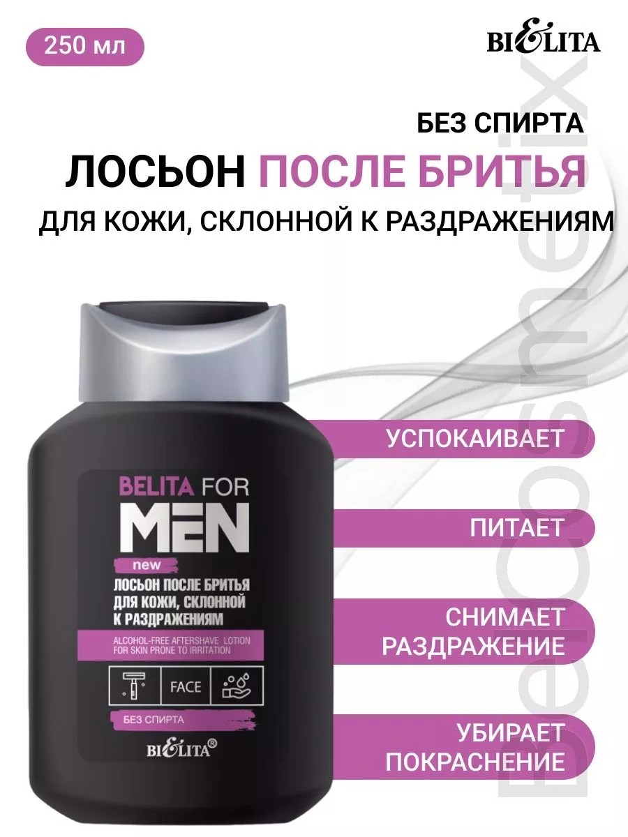 Лосьон после бритья для кожи, склонной к раздражениям и без содержания спирта- НОВИНКА ОТ БЕЛИТЫ, стал идеальным решением для тех, кто ценит нежный уход после бритья без дополнительных раздражающих компонентов. Разработанный специально для чувствительной кожи, он обеспечивает эффективное успокоение и восстановление, минимизируя дискомфорт после бритья. Уникальная формула лосьона включает в себя бережные и успокаивающие ингредиенты. Эти компоненты снимают покраснения, уменьшают воспаление и предотвращают появление раздражений, делая процесс ухода за кожей после бритья приятным и эффективным. Лосьон без спирта обеспечивает мягкость и увлажнение без лишнего сушения, что особенно важно для кожи, склонной к чувствительности. Лосьон также способствует смягчению участков бороды, что облегчает последующее бритье. Его деликатное воздействие делает его идеальным выбором для тех, кто сталкивается с раздражением и покраснением после бритья. Регулярное использование этого лосьона помогает укрепить кожный барьер, делая кожу менее подверженной внешним агрессивным воздействиям. Аромат лосьона приятно дополняет ощущение свежести и спокойствия, создавая приятную атмосферу. Помогите своей коже восстановить баланс и комфорт после бритья с этим лосьоном, разработанным специально для кожи, склонной к раздражениям, и наслаждайтесь моментами приятного ухода. Лосьон специально разработан для мужчин с чувствительной кожей лица, склонной к раздражению. Он оказывает мягкий уход за кожей, успокаивая и питая ее после бритья. Активные компоненты (бетаин, гель алое-вера, Agascalm) обеспечивают успокаивающее и увлажняющее действие, снимая неприятные ощущения и покраснения после бритья. Почувствуйте нежное прикосновение лосьона, который деликатно ухаживает за вашей кожей, придавая ей свежесть и жизненную силу без раздражений! Прекрасный подарок ко Дню Защитника Отечества, 23 февраля, на День Рождения и просто так, чтобы порадовать себя!