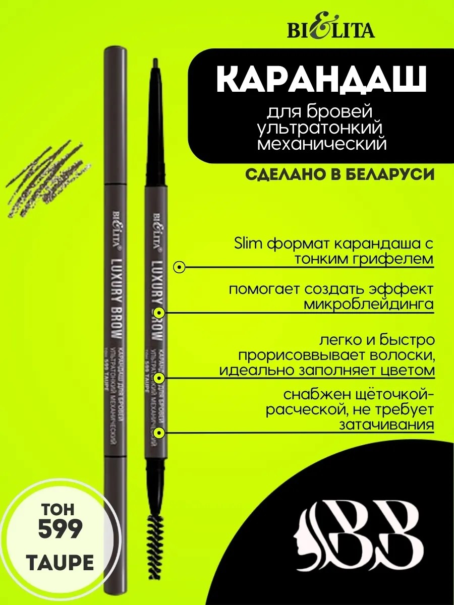 Карандаш для бровей ультратонкий механический LUXURY Brow Bielita — это идеальный инструмент для создания безупречного образа. С его помощью вы сможете легко и быстро сделать свои брови выразительными и естественными, придавая им идеальную форму и объем.