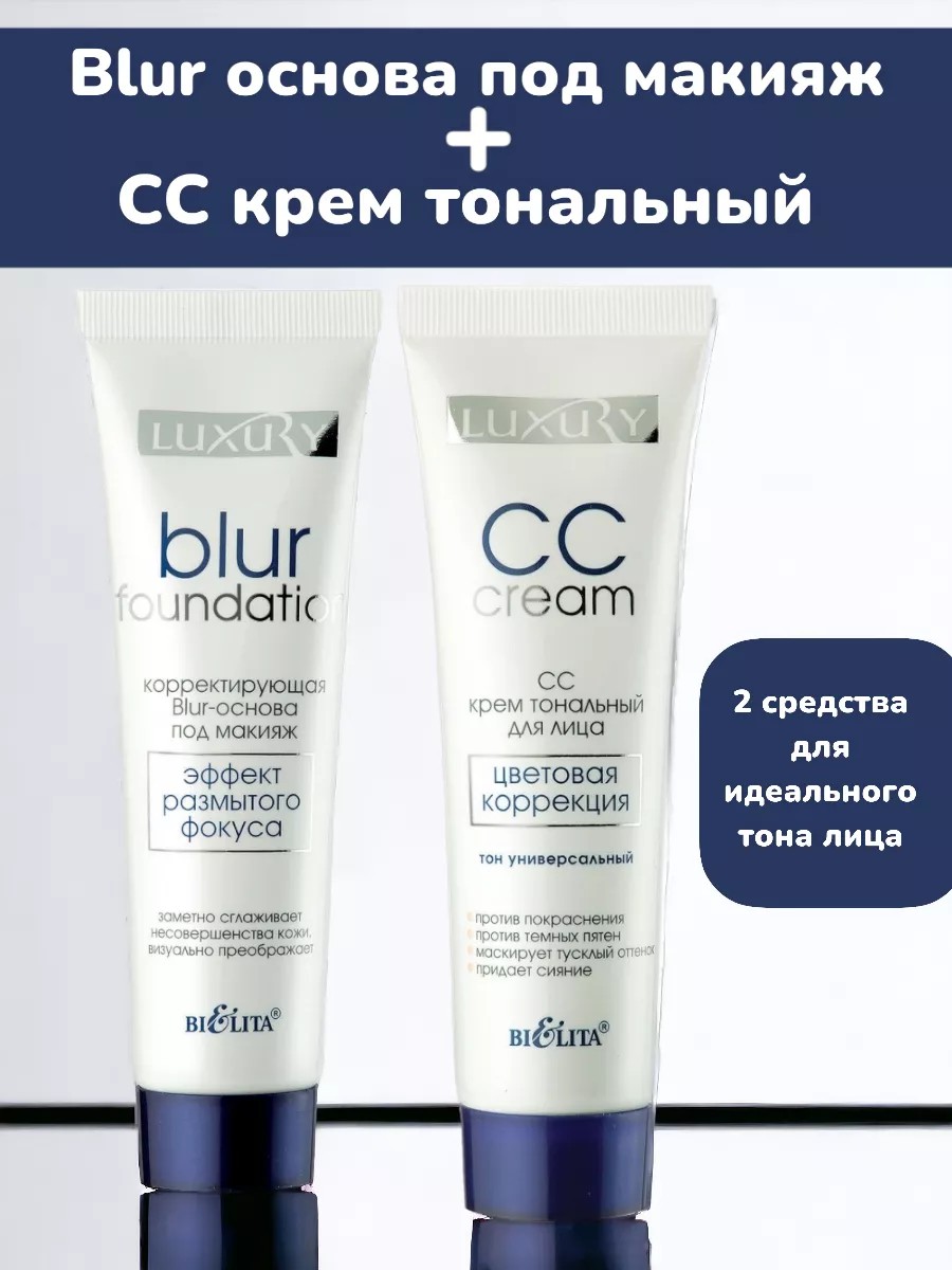 набор Luxury от белорусского производителя блита вуключает в себя Blur крем - основа под макияж и CC крем тонирующий универсального оттенда, который подстраивается под вашу кожу.