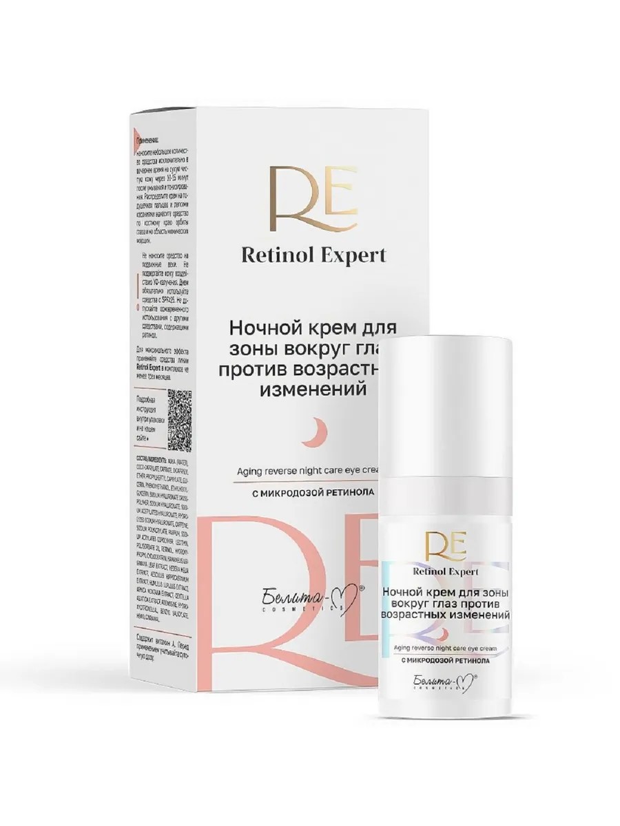 Belita-M Retinol Expert Anti-Age Night Eye Cream 15g. This radiance- and freshness-restoring product with a microdose of retinol effectively corrects age-related changes in delicate skin. This anti-aging cocktail of active ingredients helps significantly improve the condition of the eye area, leaving the eyes looking open and rested.