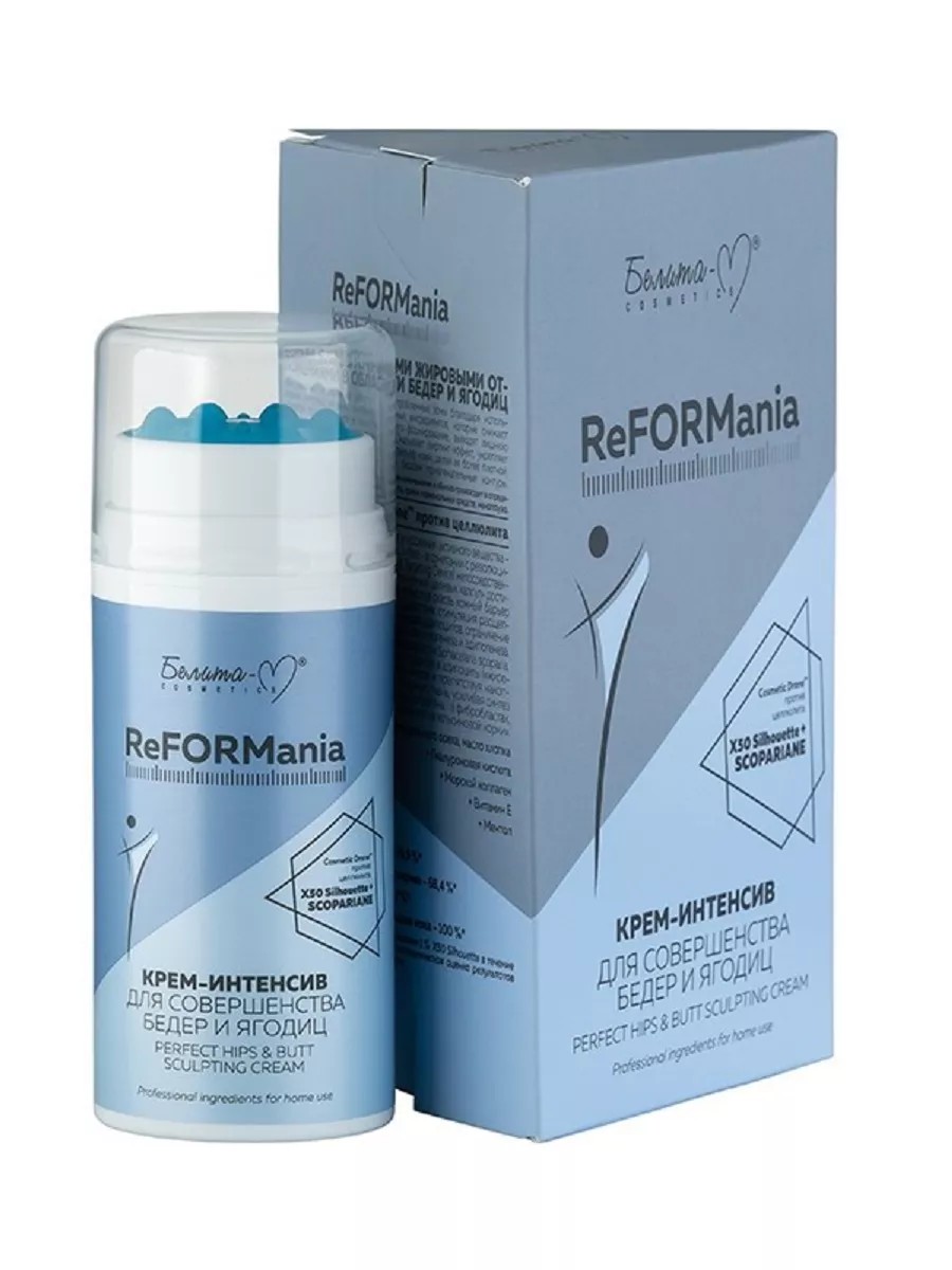 Reformania - это комплексная программа моделирования силуэта и улучшения внешнего вида тела в проблемных зонах для домашнего применения, разработанная на основе ингредиентов профессионального назначения.